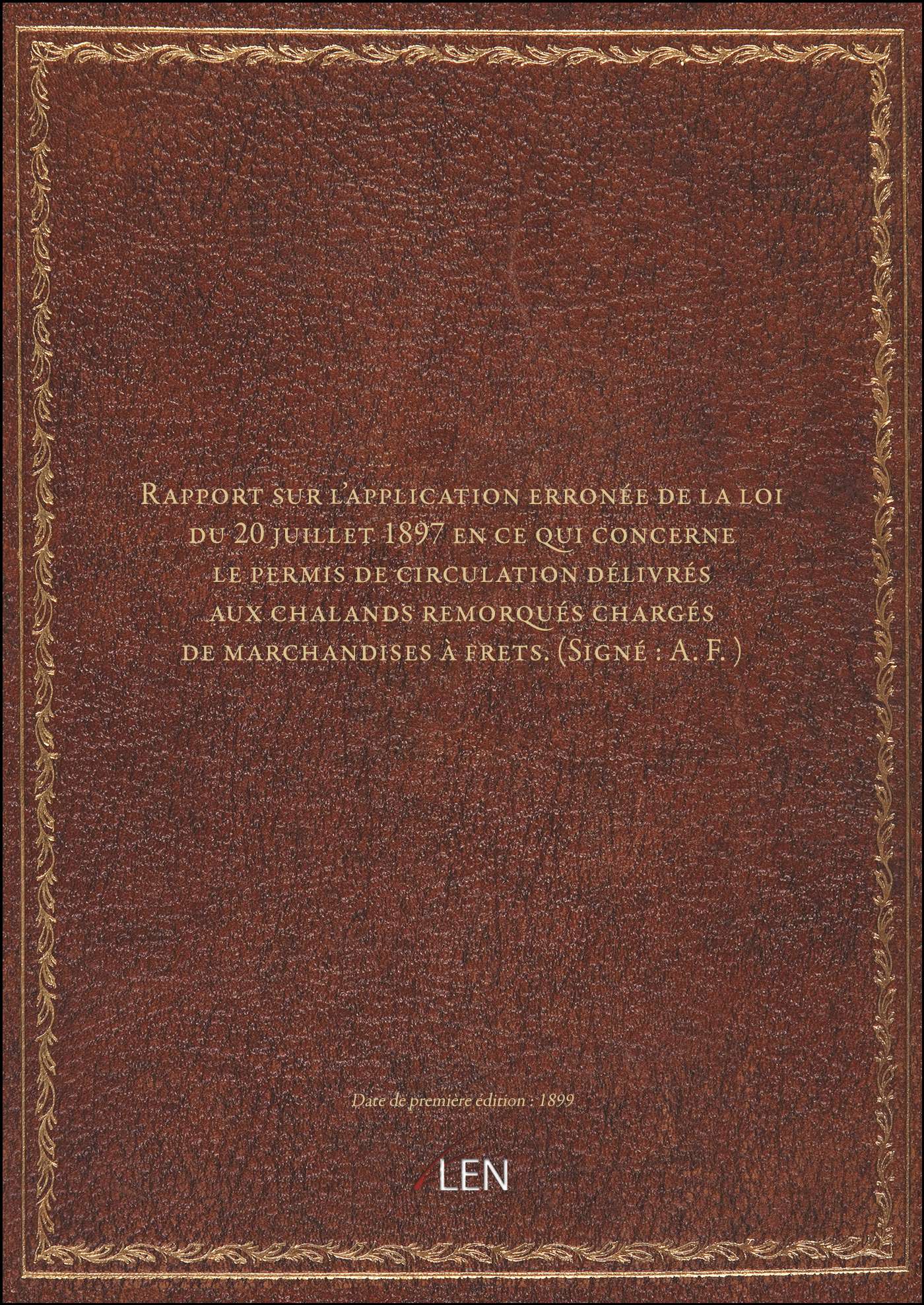 Titre complet : Rapport sur l'application erronée de la loi du 20 juillet 1897 en ce qui concerne le permis de circulation délivrés aux chalands remorqués chargés de marchandises à frets. (Signé : A. F.)