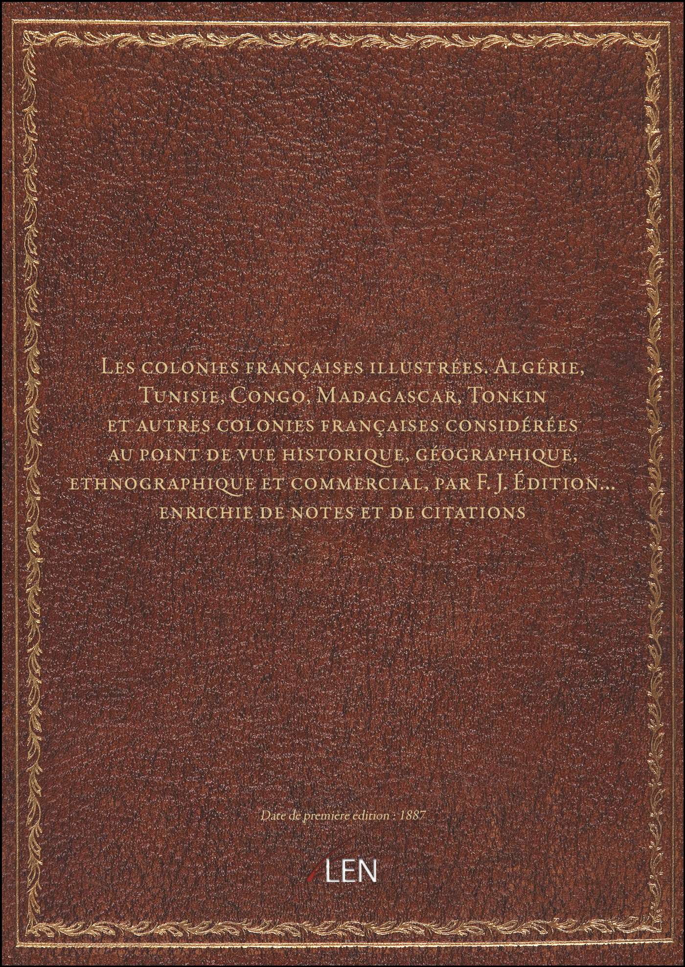 Les colonies françaises illustrées. Algérie, Tunisie, Congo, Madagascar, Tonkin et autres colonies françaises considérées au point de vue historique, géographique, ethnographique et commercial, par F. J. Édition... enrichie de notes et de citations
