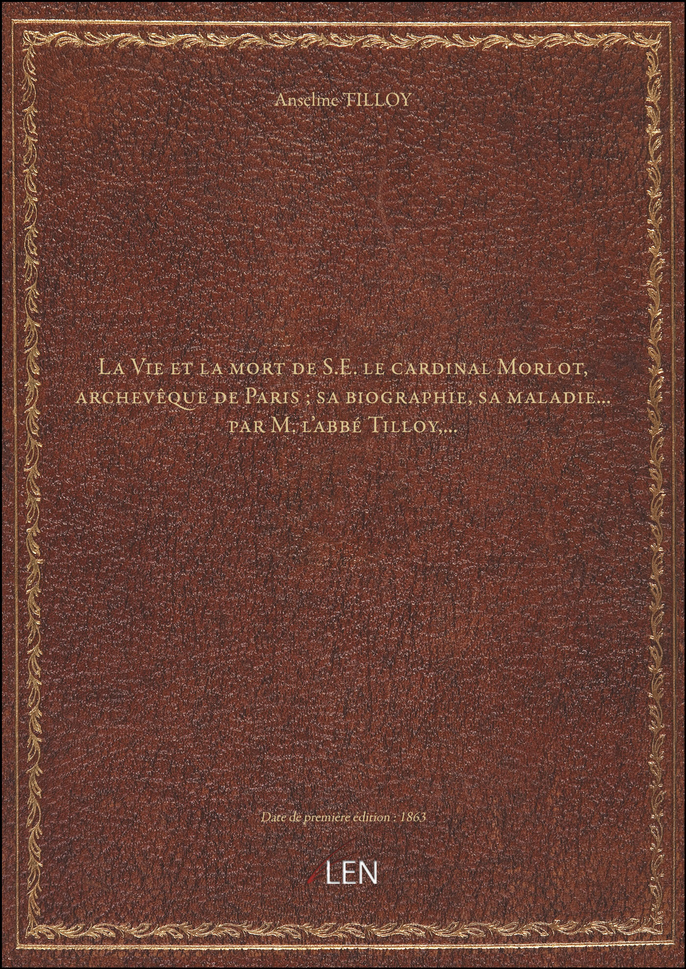 Titre complet : La Vie et la mort de S.E. le cardinal Morlot, archevêque de Paris ; sa biographie, sa maladie... par M. l'abbé Tilloy,...