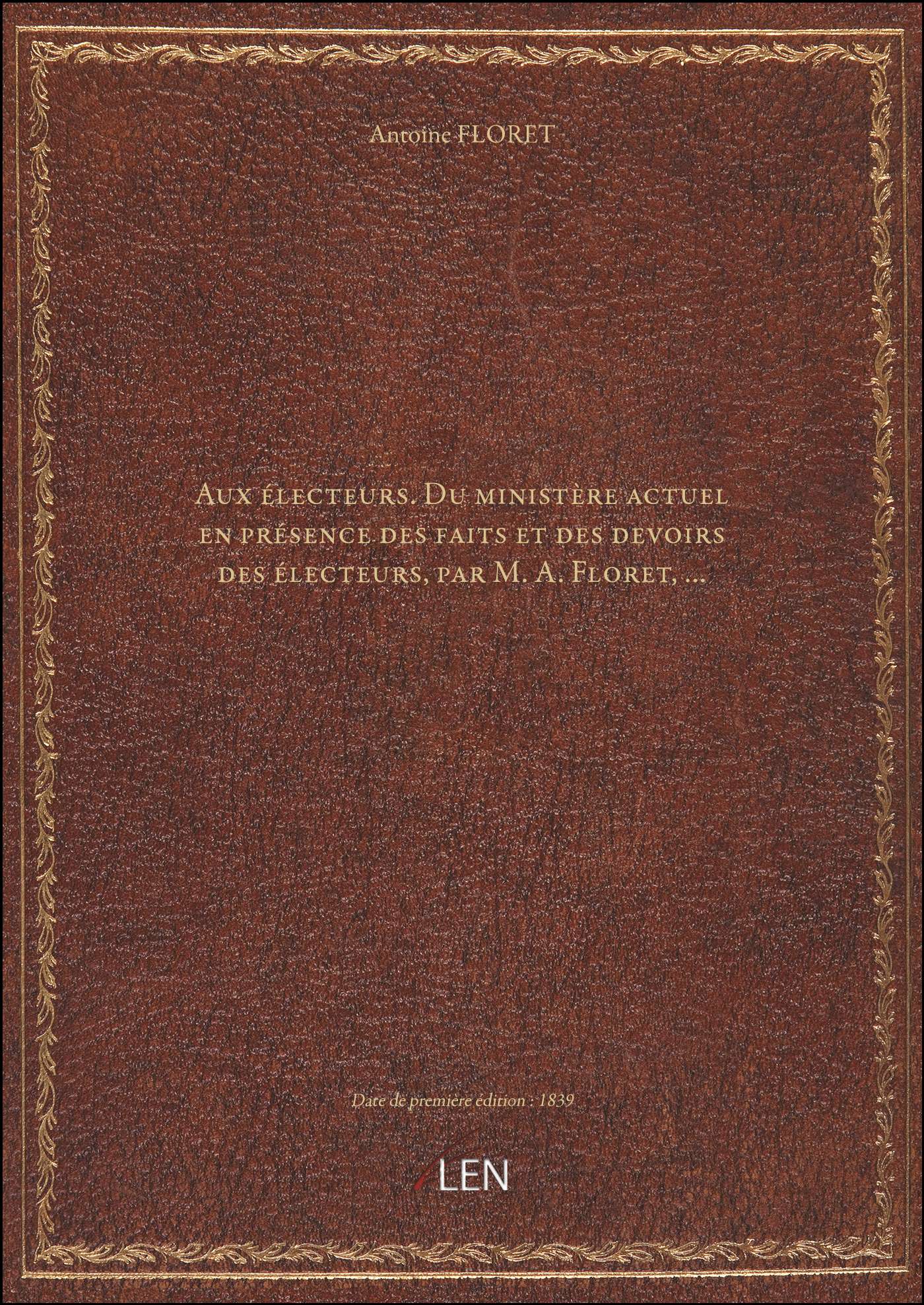 Titre complet : Aux électeurs. Du ministère actuel en présence des faits et des devoirs des électeurs, par M. A. Floret,...