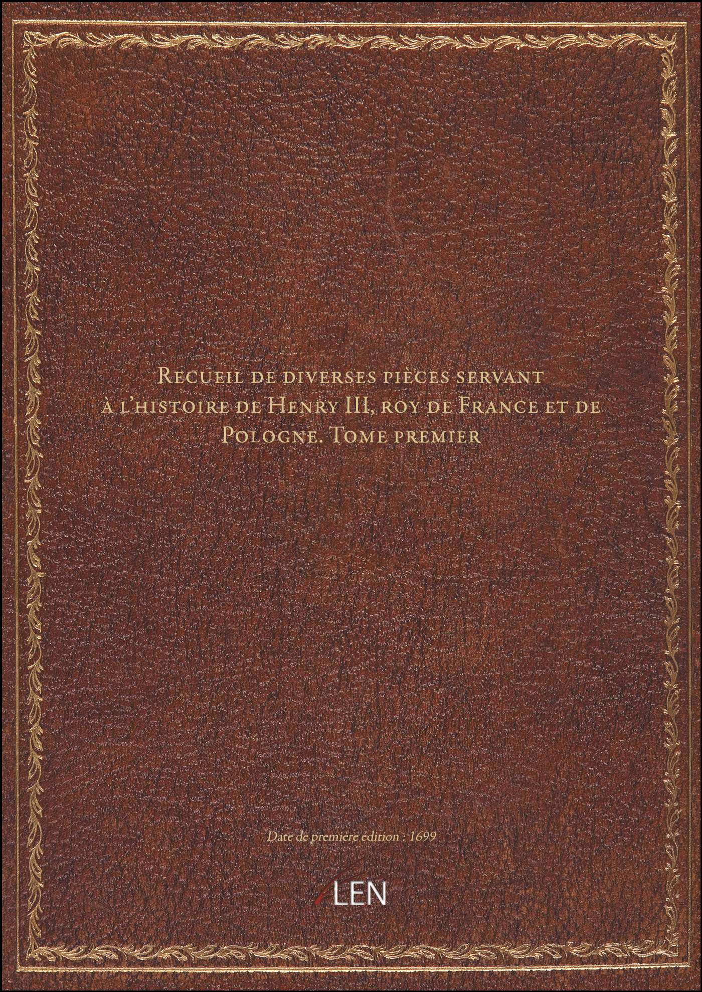 Titre complet : Recueil de diverses pièces servant à l'histoire de Henry III, roy de France et de Pologne. Tome premier