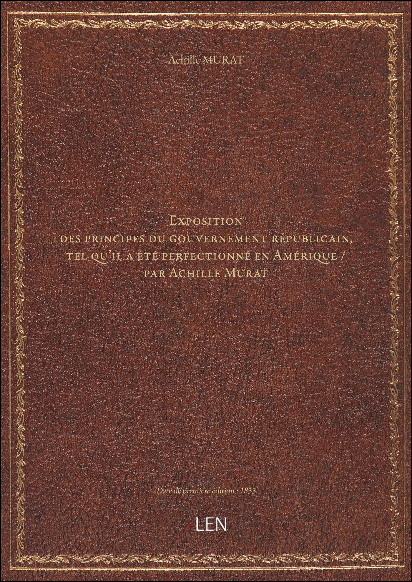 Titre complet : Exposition des principes du gouvernement républicain, tel qu'il a été perfectionné en Amérique / par Achille Murat