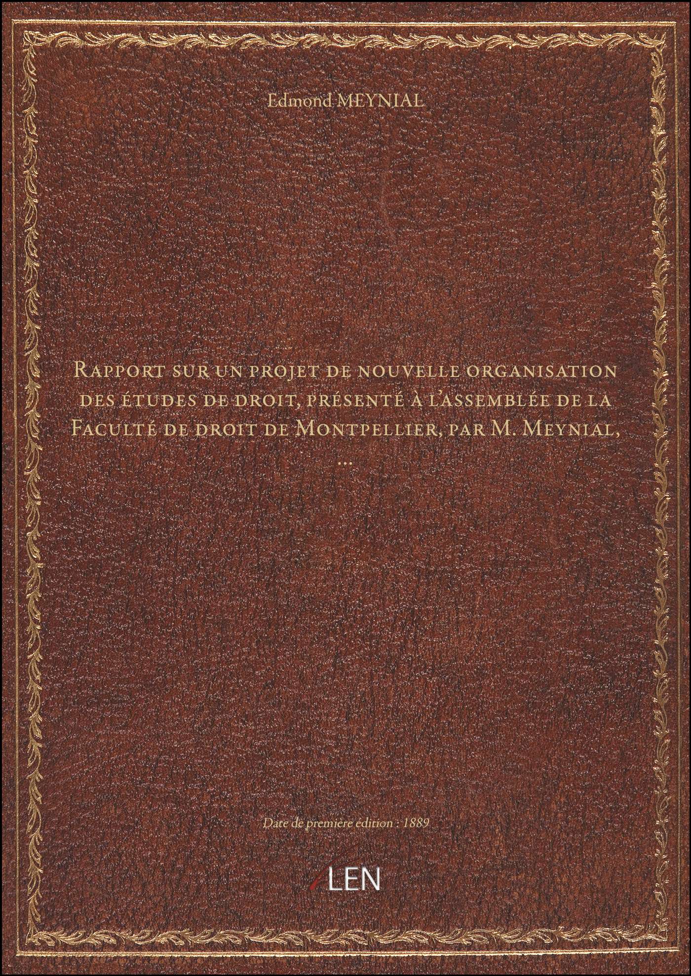 Rapport sur un projet de nouvelle organisation des études de droit, présenté à l'assemblée de la Faculté de droit de Montpellier, par M. Meynial,...