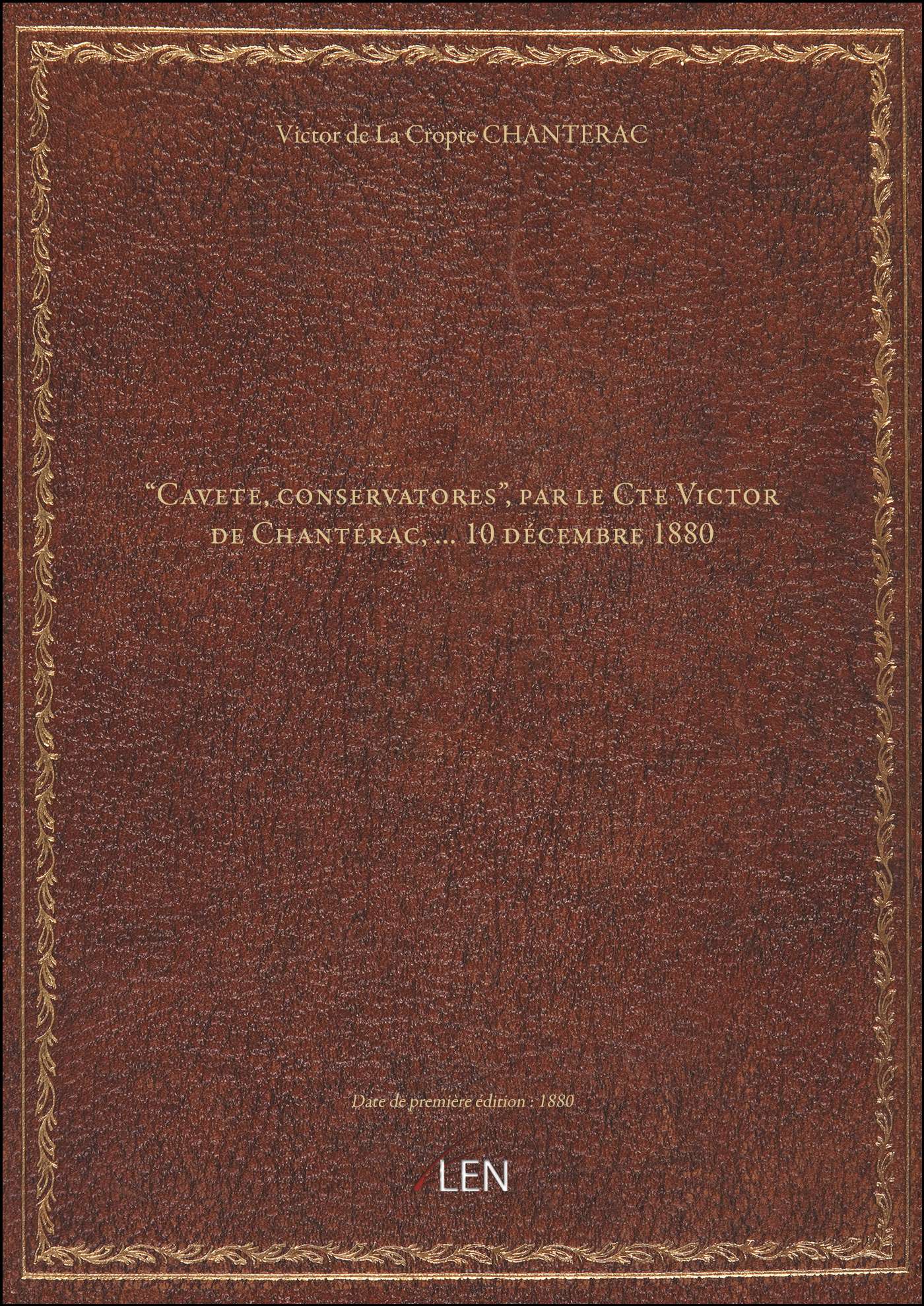 Titre complet : "Cavete, conservatores" , par le Cte Victor de Chantérac,... 10 décembre 1880