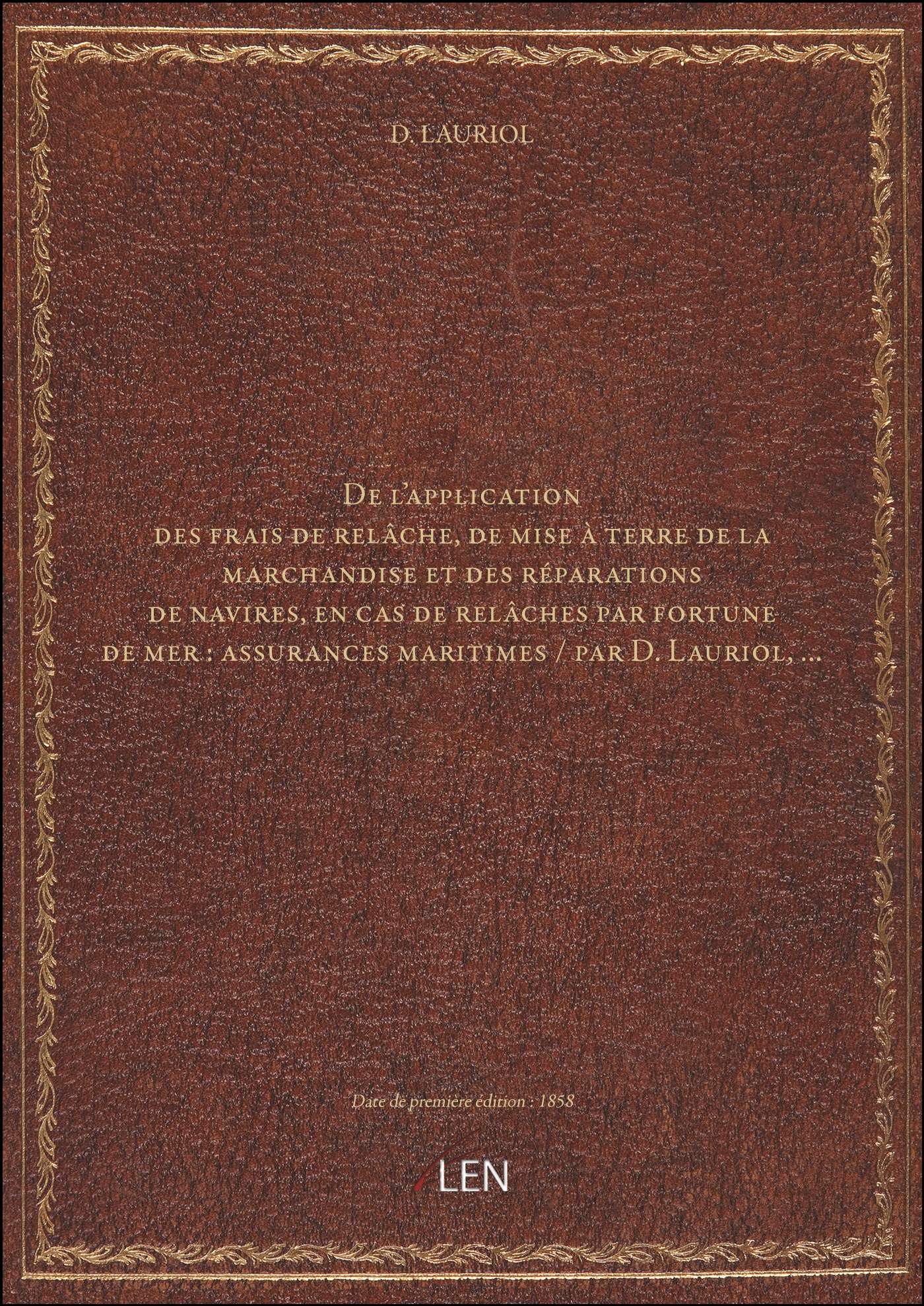 Titre complet : De l'application des frais de relâche, de mise à terre de la marchandise et des réparations de navires, en cas de relâches par fortune de mer : assurances maritimes / par D. Lauriol,...