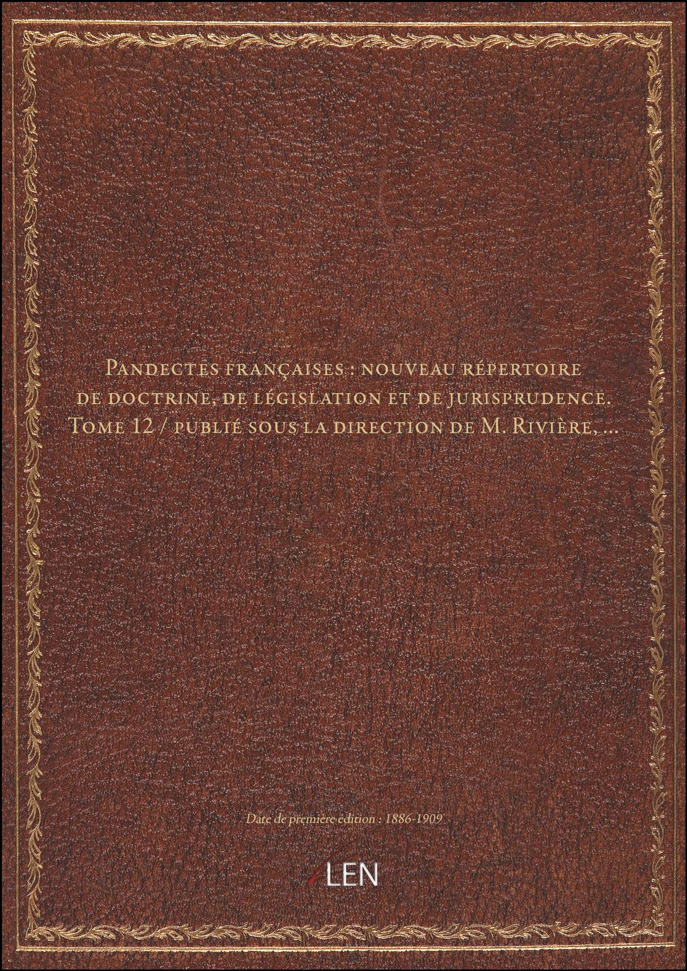 Pandectes françaises : nouveau répertoire de doctrine, de législation et de jurisprudence. Tome 12 / publié sous la direction de M. Rivière,...