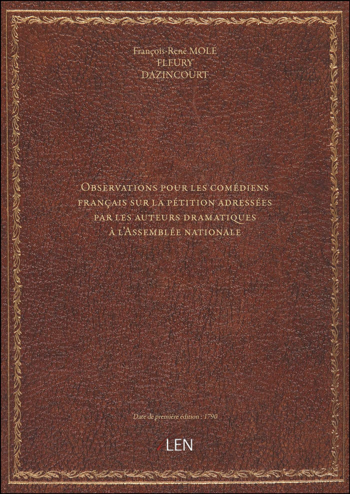 Titre complet : Observations pour les comédiens français sur la pétition adressées par les auteurs dramatiques à l'Assemblée nationale