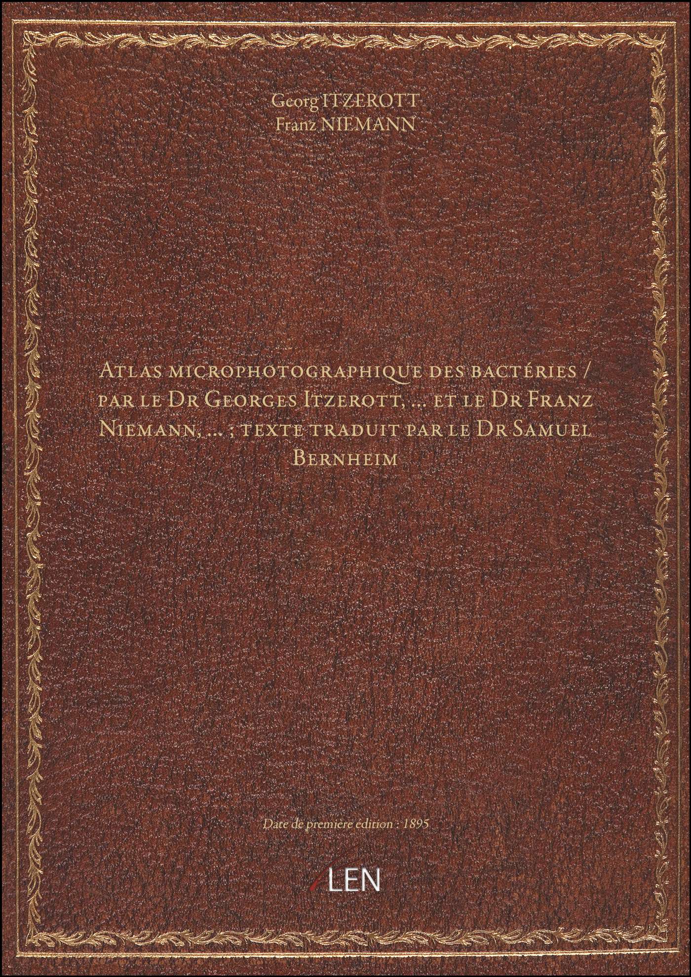 Titre complet : Atlas microphotographique des bactéries / par le Dr Georges Itzerott,... et le Dr Franz Niemann,... ; texte traduit par le Dr Samuel Bernheim