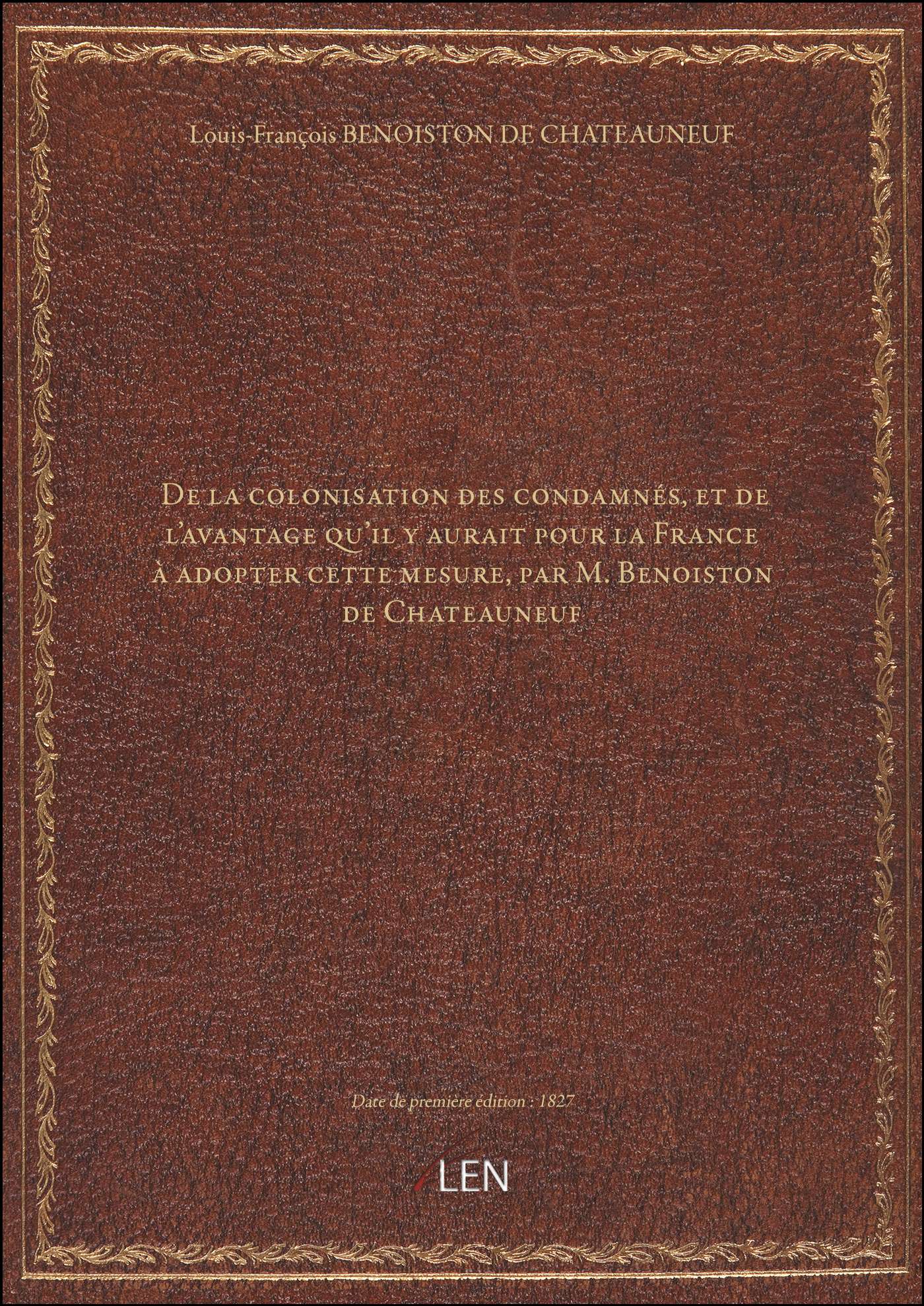 Titre complet : De la colonisation des condamnés, et de l'avantage qu'il y aurait pour la France à adopter cette mesure , par M. Benoiston de Chateauneuf