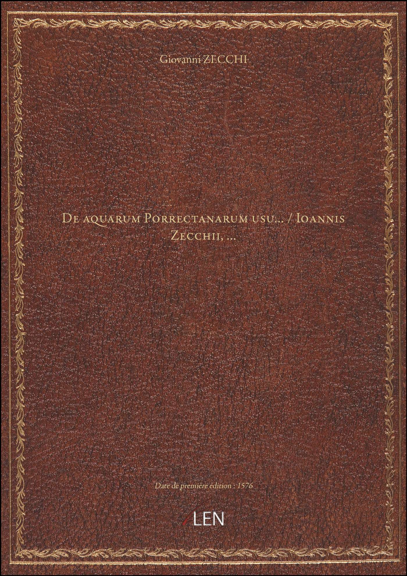 Titre complet : De aquarum Porrectanarum usu... ([Reprod.]) / Ioannis Zecchii,...
