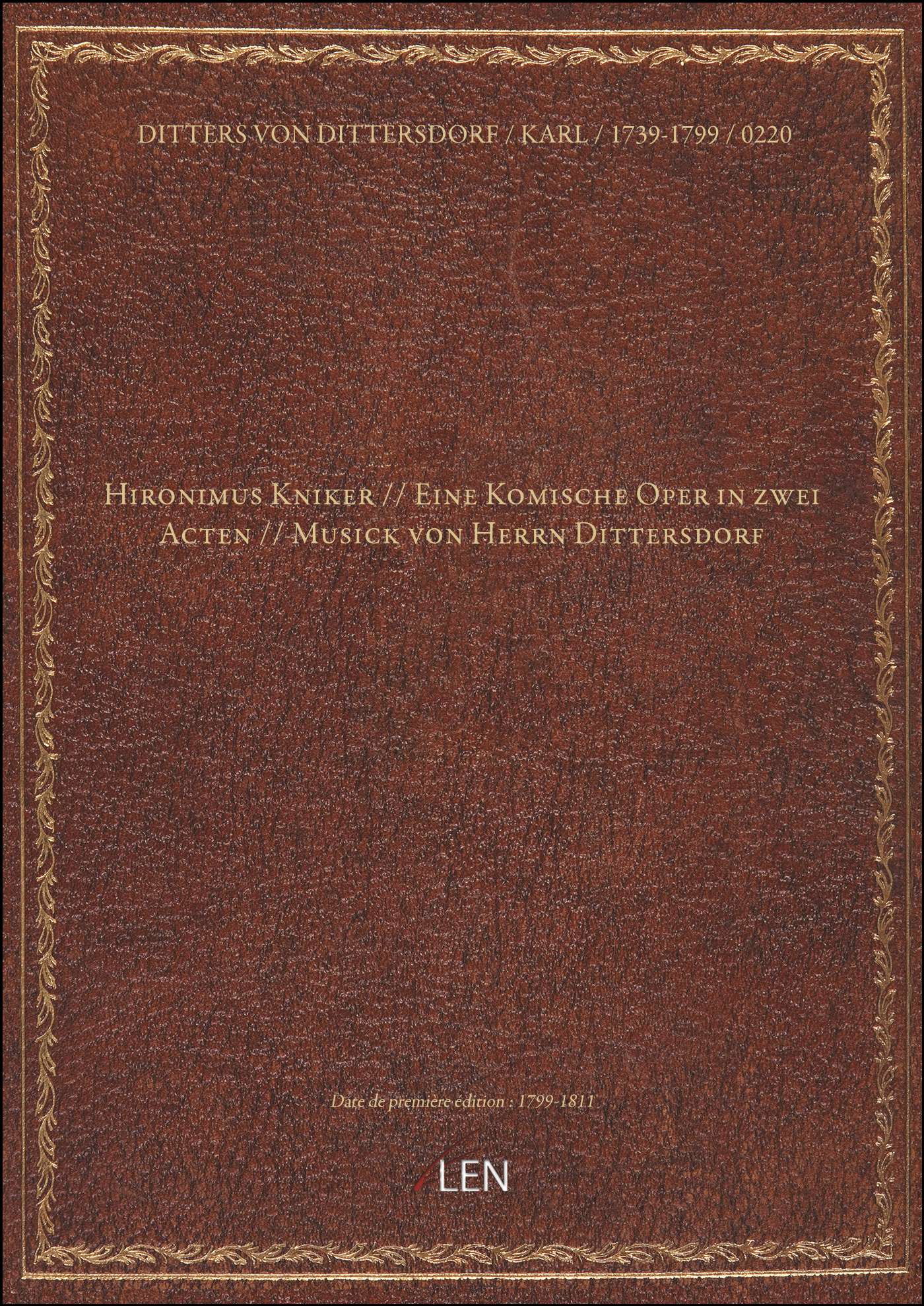 Titre complet : Hironimus Kniker // Eine Komische Oper in zwei Acten // Musick von Herrn Dittersdorf