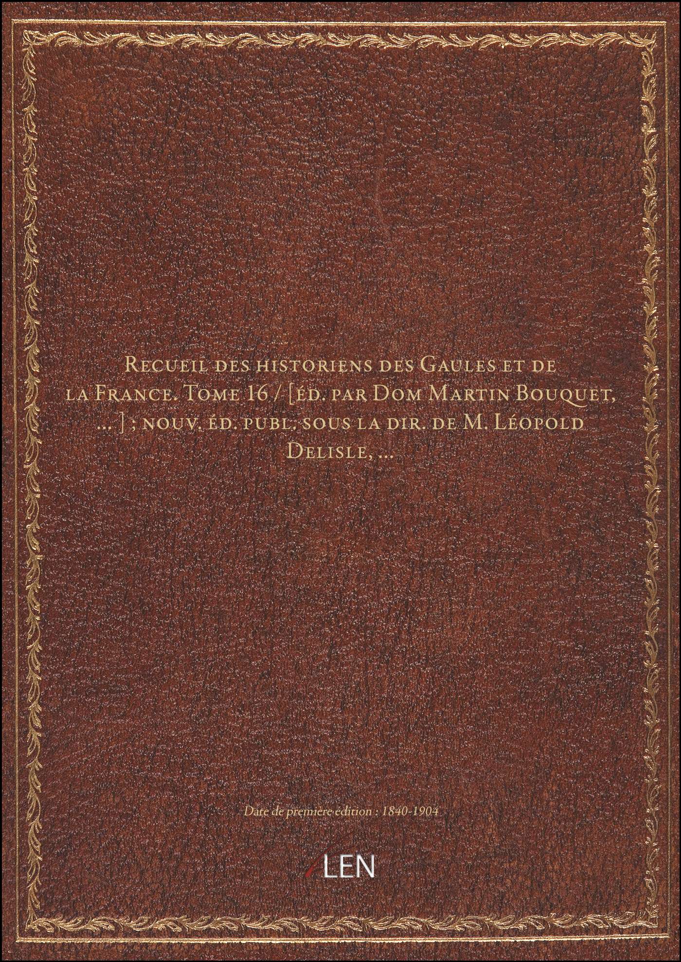 Titre complet : Recueil des historiens des Gaules et de la France. Tome 16 / [éd. par Dom Martin Bouquet,...] ; nouv. éd. publ. sous la dir. de M. Léopold Delisle,...
