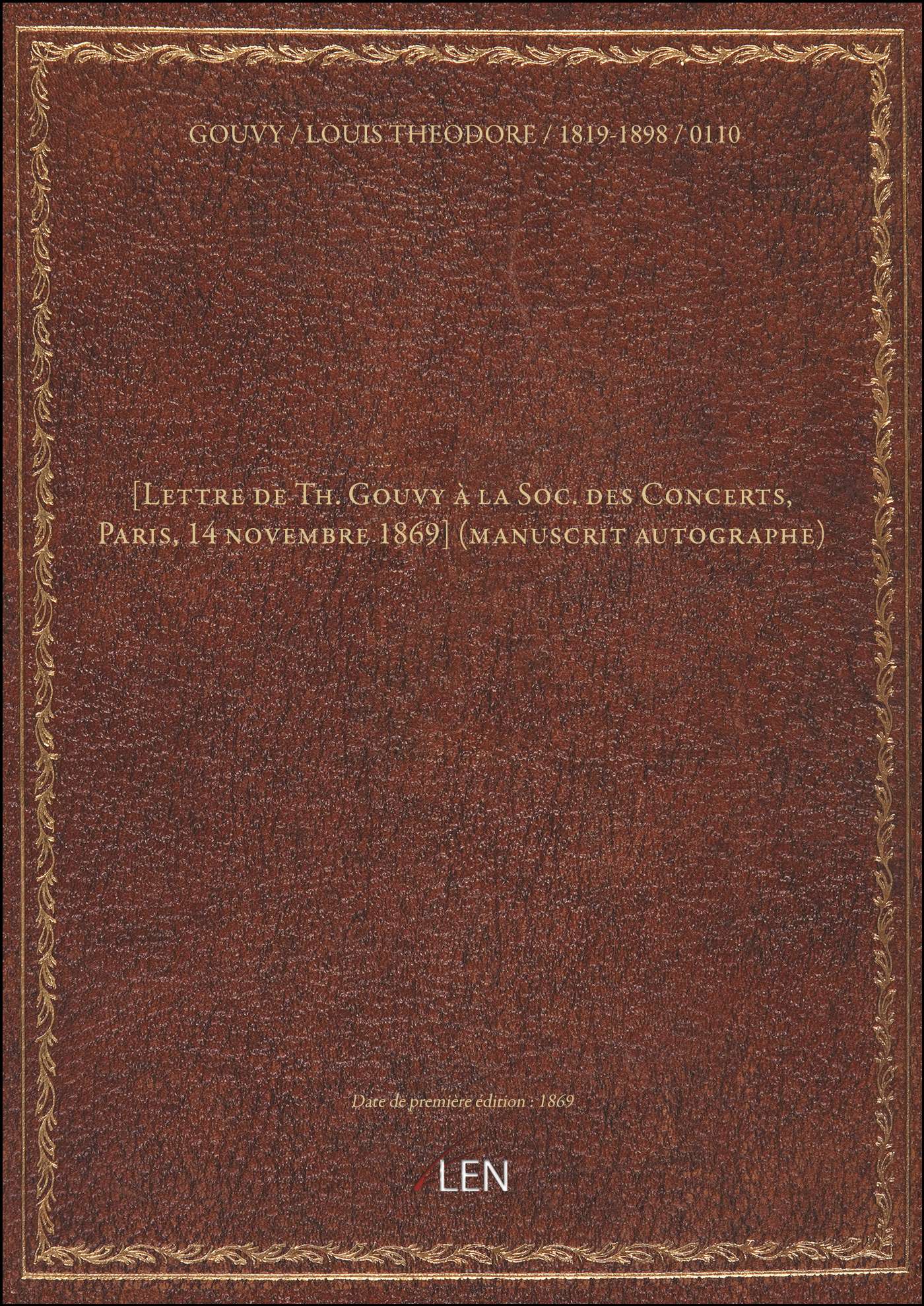 Titre complet : [Lettre de Th. Gouvy à la Soc. des Concerts, Paris, 14 novembre 1869] (manuscrit autographe)