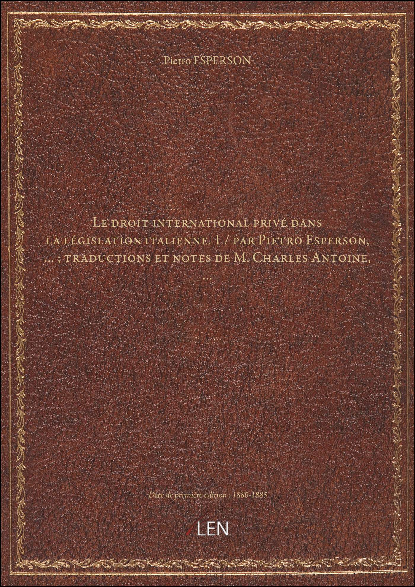 Le droit international privé dans la législation italienne. 1 / par Pietro Esperson,... ; traductions et notes de M. Charles Antoine,...