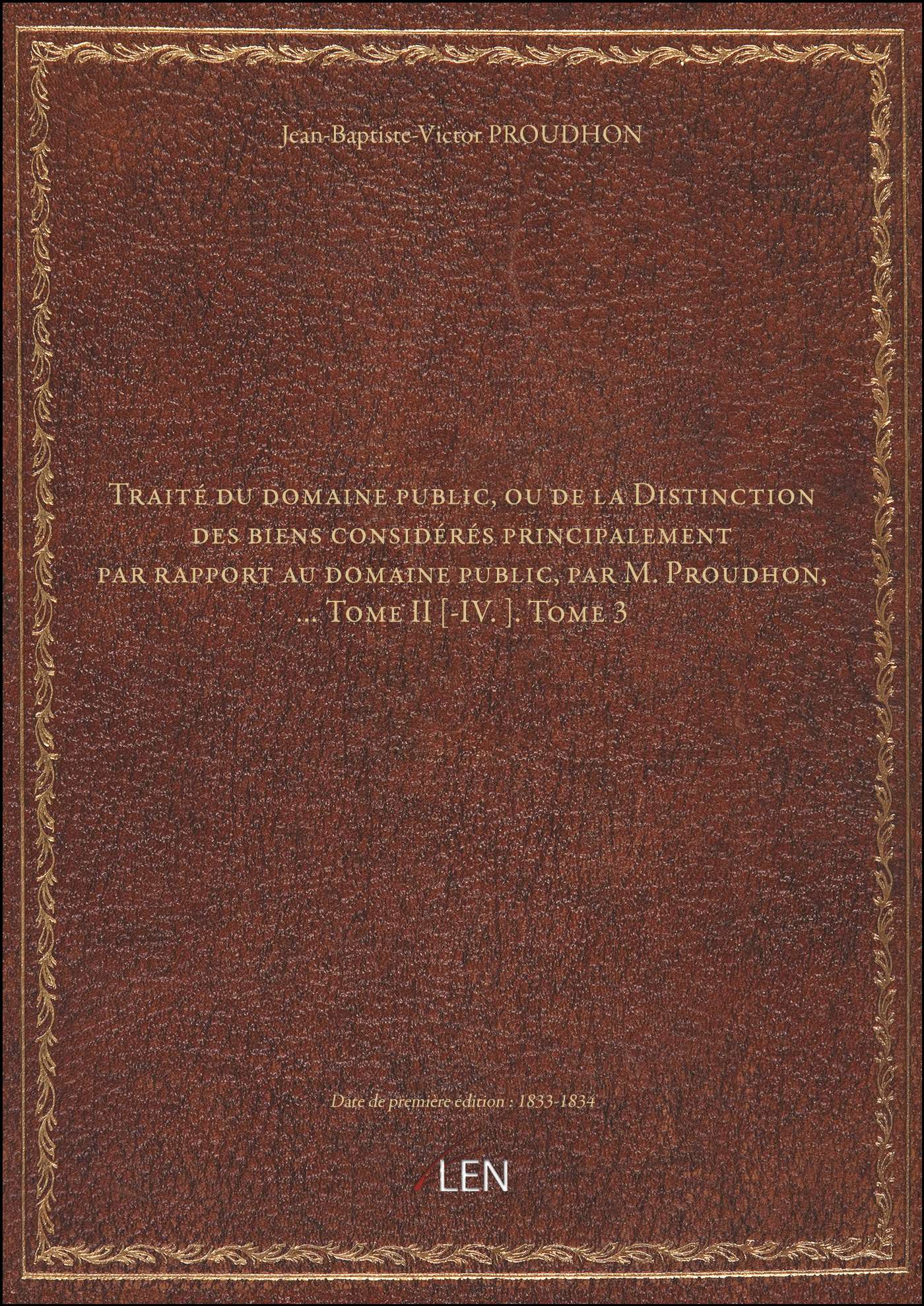 Titre complet : Traité du domaine public, ou de la Distinction des biens considérés principalement par rapport au domaine public, par M. Proudhon,... Tome II [-IV.]. Tome 3