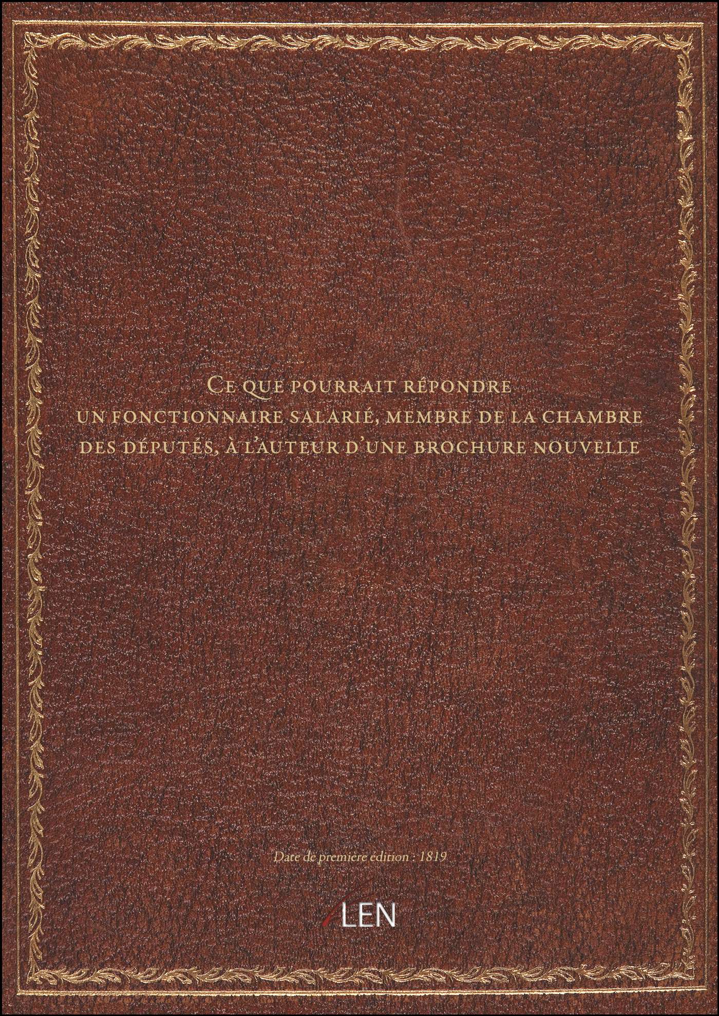 Titre complet : Ce que pourrait répondre un fonctionnaire salarié, membre de la chambre des députés, à l'auteur d'une brochure nouvelle