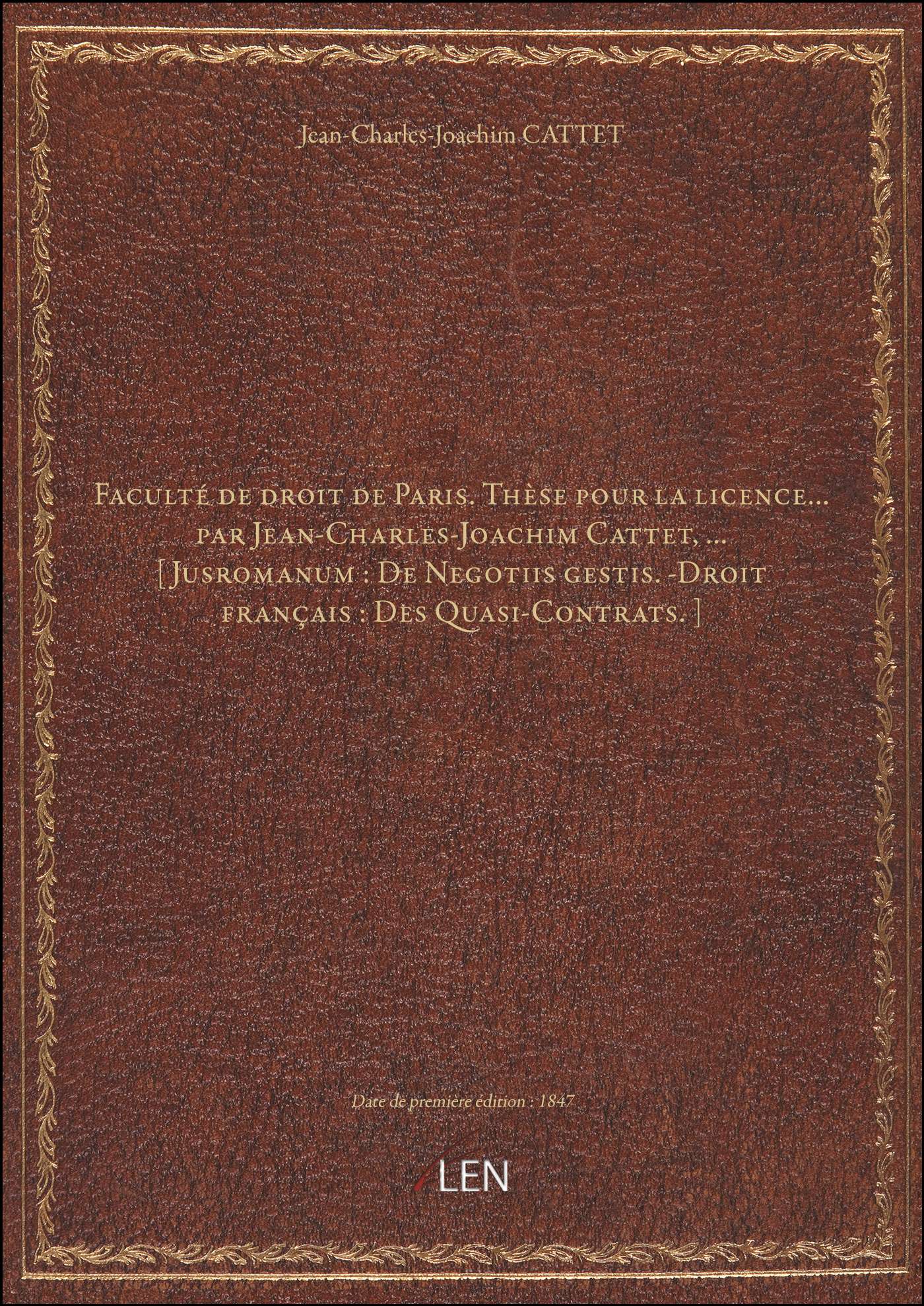 Faculté de droit de Paris. Thèse pour la licence... par Jean-Charles-Joachim Cattet,... [Jusromanum : De Negotiis gestis. -Droit français : Des Quasi-Contrats.]