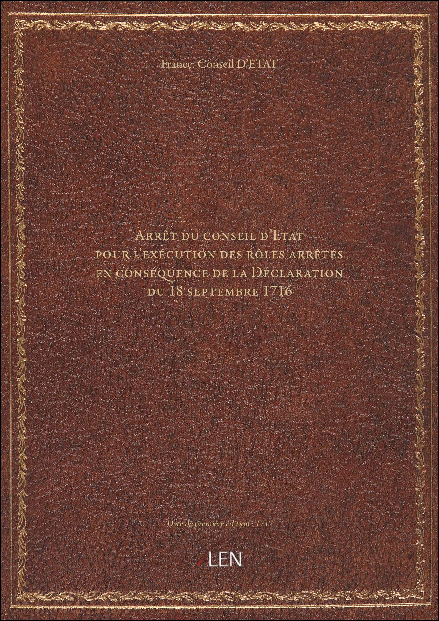 Titre complet : Arrêt du conseil d'Etat pour l'exécution des rôles arrêtés en conséquence de la Déclaration du 18 septembre 1716