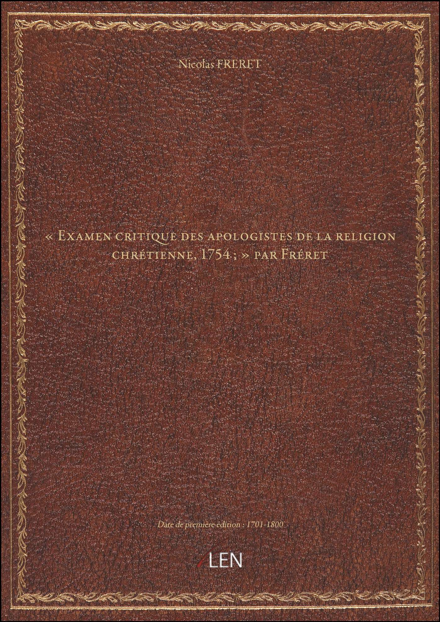 Titre complet : « Examen critique des apologistes de la religion chrétienne, 1754 ; » par Fréret