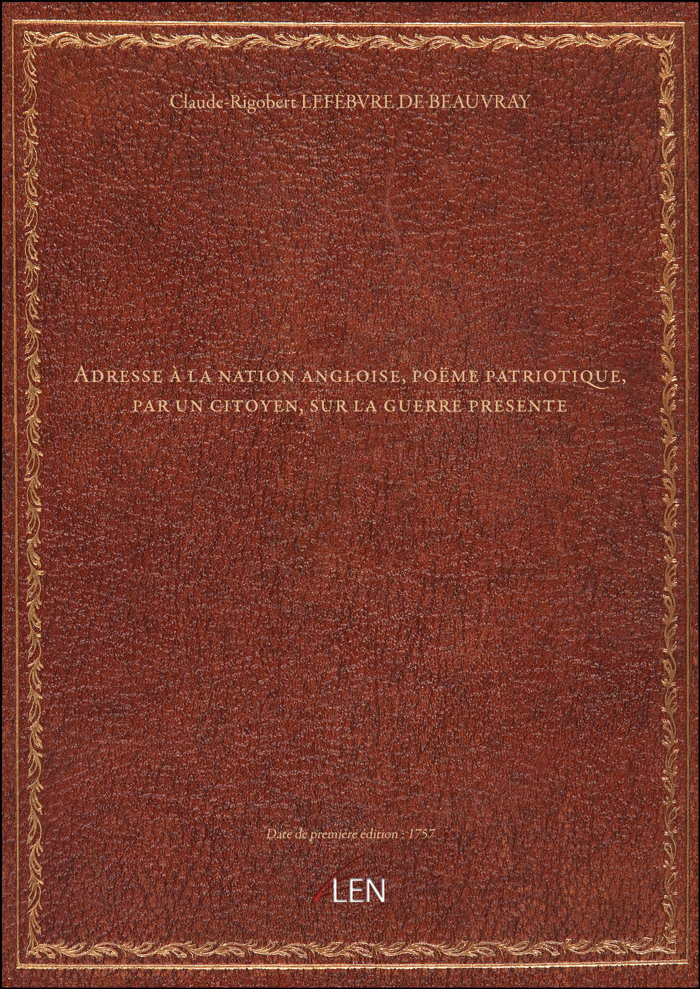 Titre complet : Adresse à la nation angloise , poëme patriotique, par un citoyen, sur la guerre presente