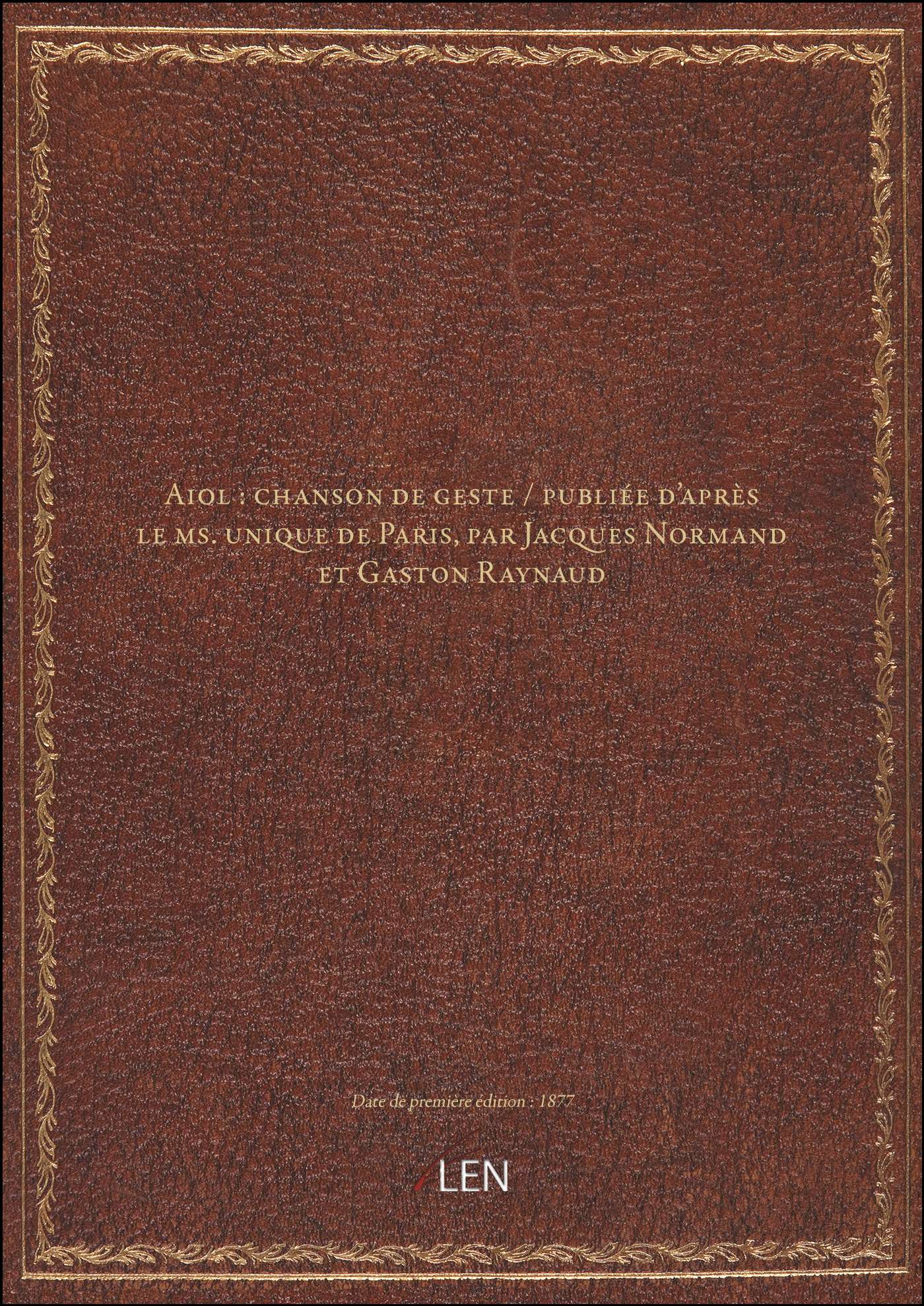 Titre complet : Aiol : chanson de geste / publiée d'après le ms. unique de Paris, par Jacques Normand et Gaston Raynaud
