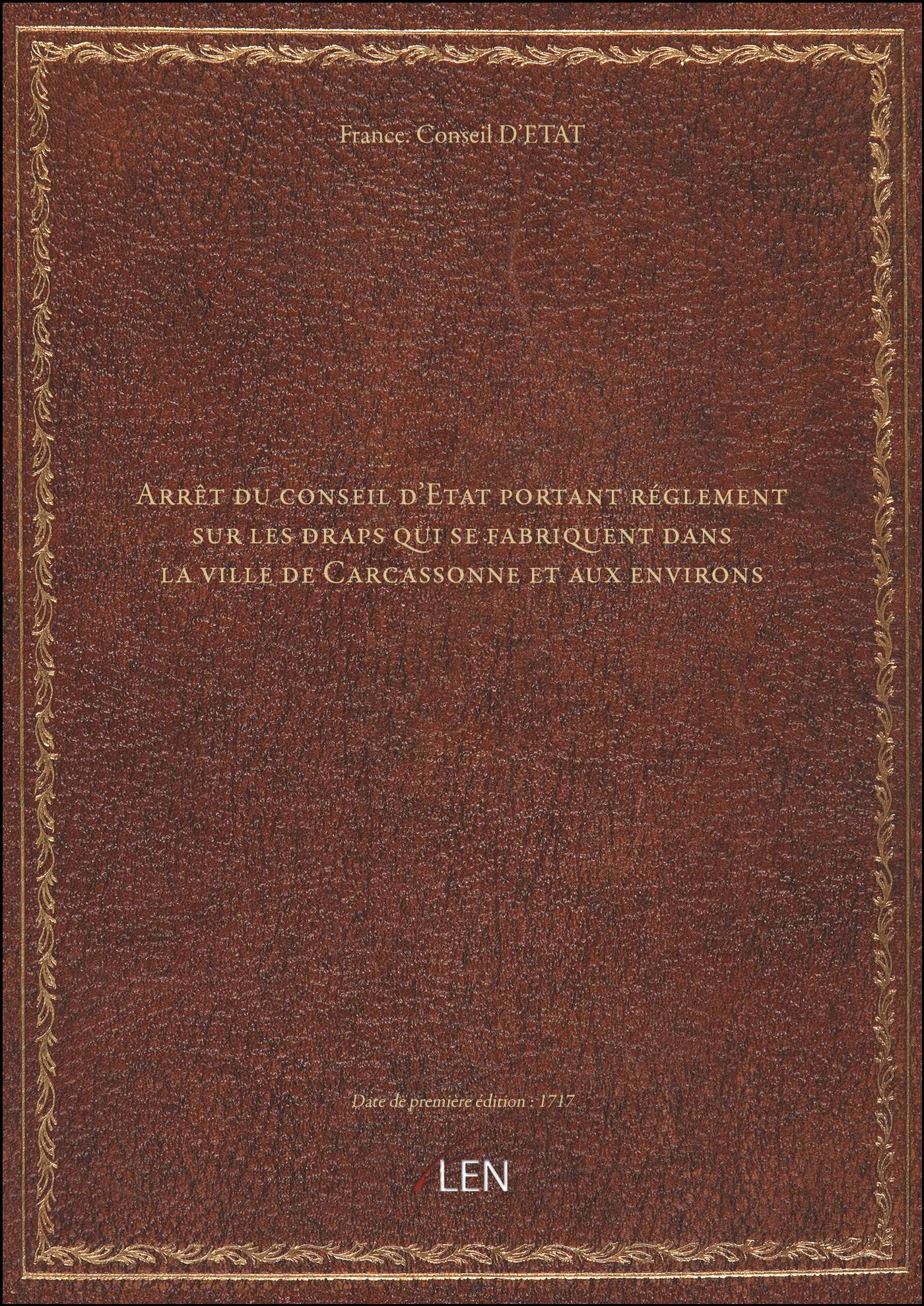 Titre complet : Arrêt du conseil d'Etat portant réglement sur les draps qui se fabriquent dans la ville de Carcassonne et aux environs