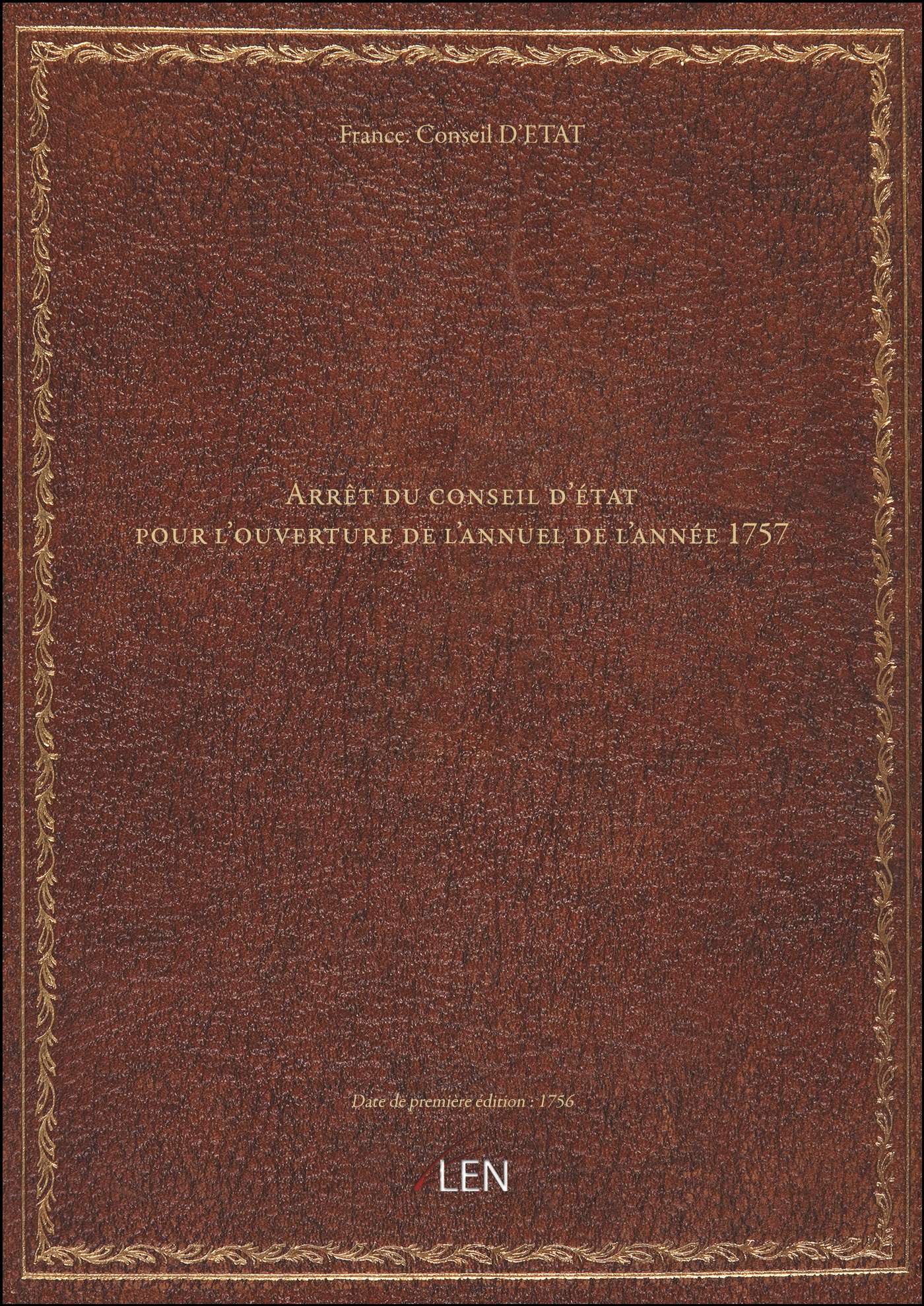 Titre complet : Arrêt du conseil d'état pour l'ouverture de l'annuel de l'année 1757