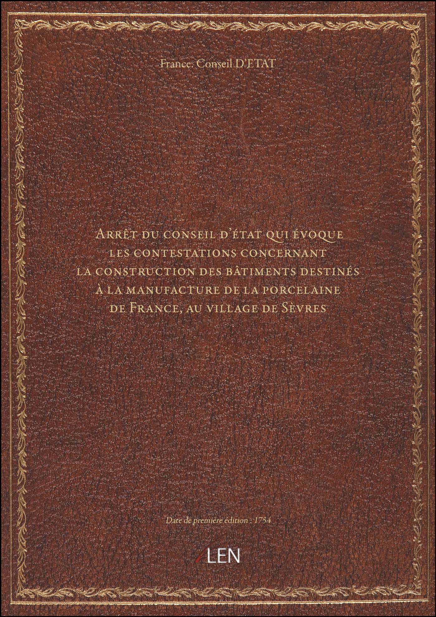 Titre complet : Arrêt du conseil d'état qui évoque les contestations concernant la construction des bâtiments destinés à la manufacture de la porcelaine de France, au village de Sèvres