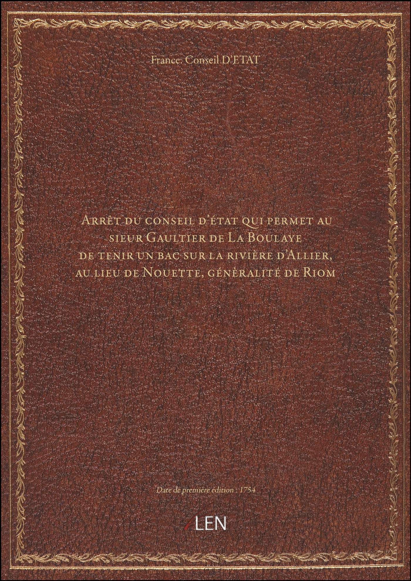 Titre complet : Arrêt du conseil d'état qui permet au sieur Gaultier de La Boulaye de tenir un bac sur la rivière d'Allier, au lieu de Nouette, génèralité de Riom
