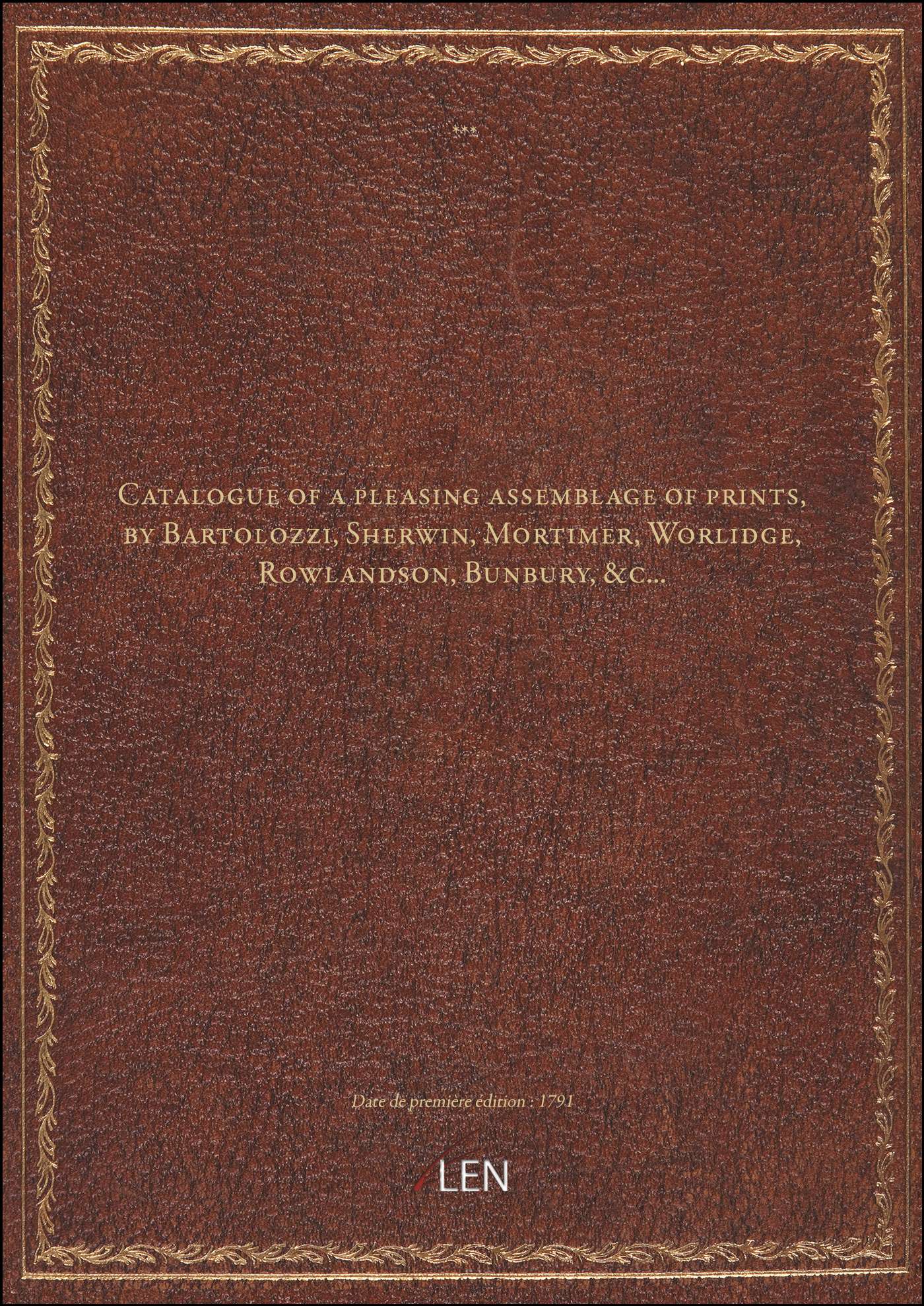 Titre complet : Catalogue of a pleasing assemblage of prints, by Bartolozzi, Sherwin, Mortimer, Worlidge, Rowlandson, Bunbury, &c...