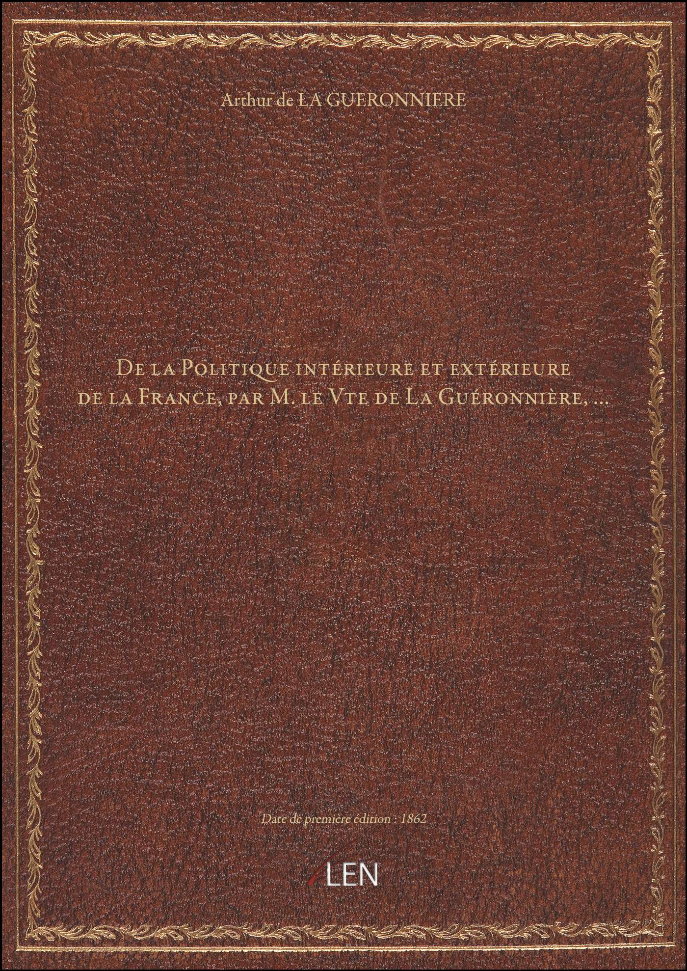 Titre complet : De la Politique intérieure et extérieure de la France, par M. le Vte de La Guéronnière,...