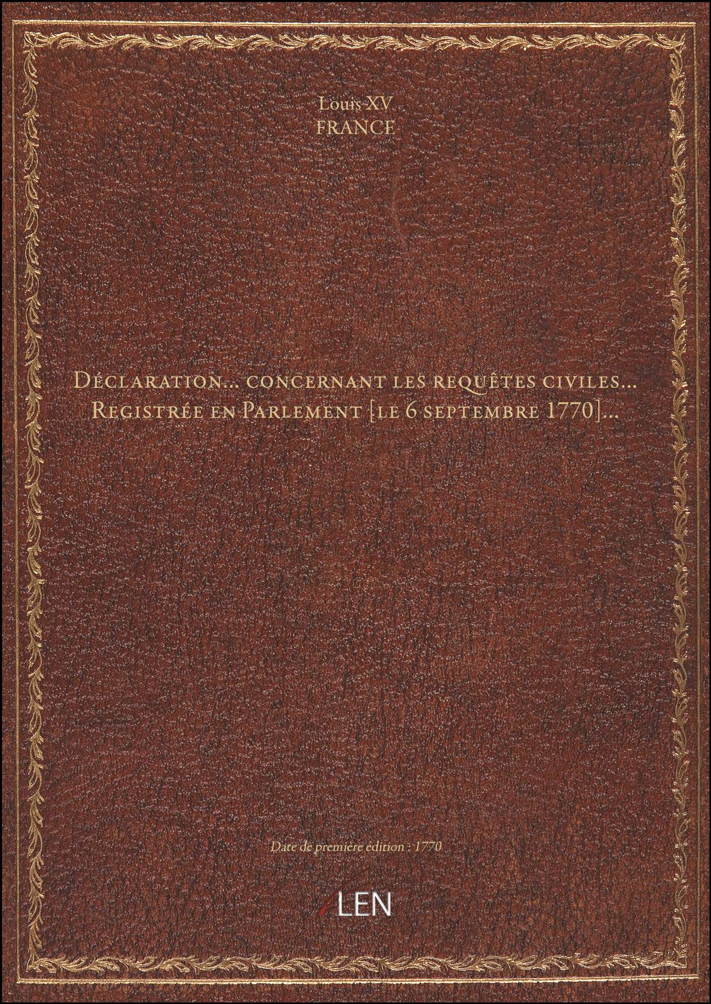 Titre complet : Déclaration... concernant les requêtes civiles... Registrée en Parlement [le 6 septembre 1770]...
