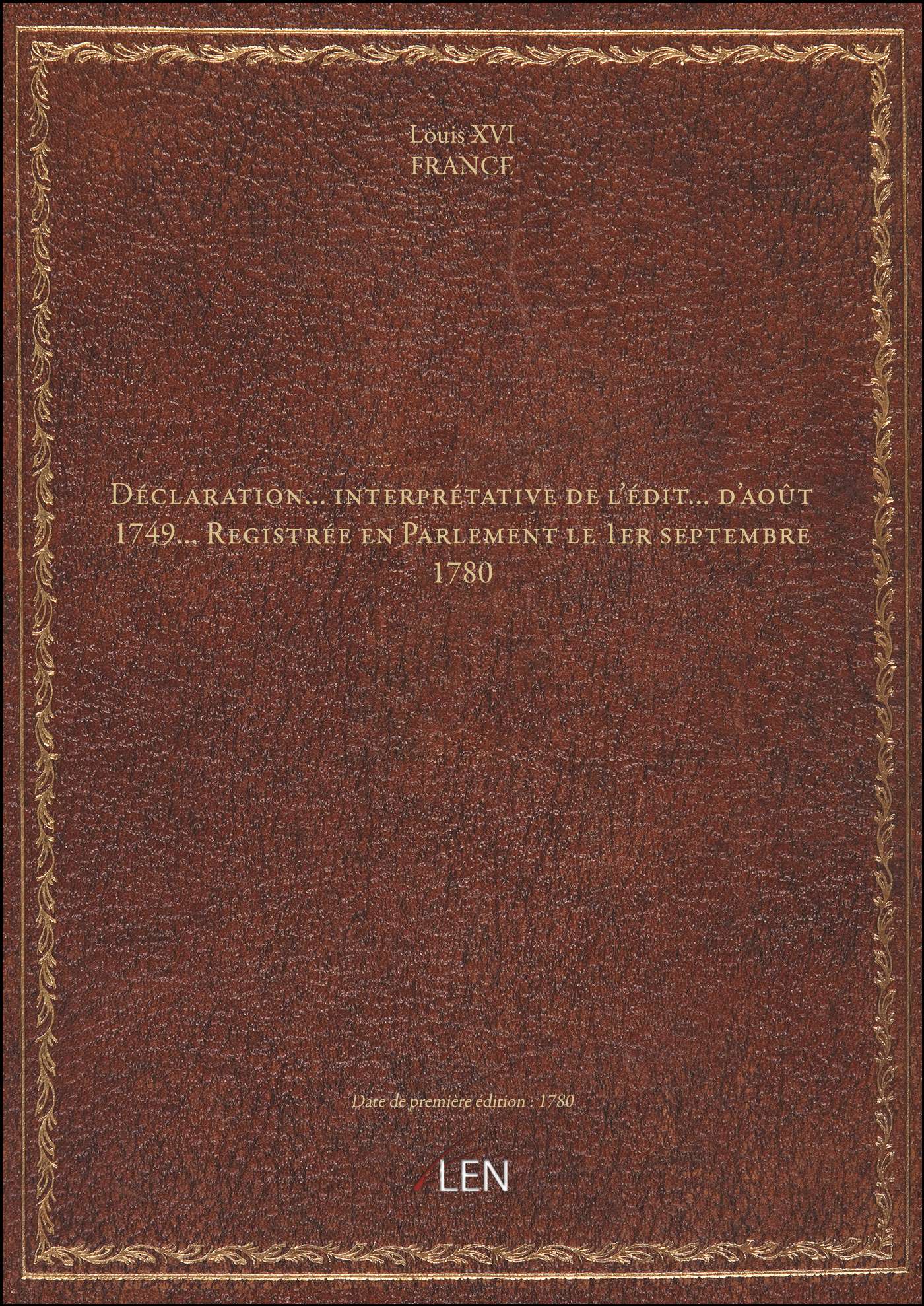 Titre complet : Déclaration... interprétative de l'édit... d'août 1749... Registrée en Parlement le 1er septembre 1780