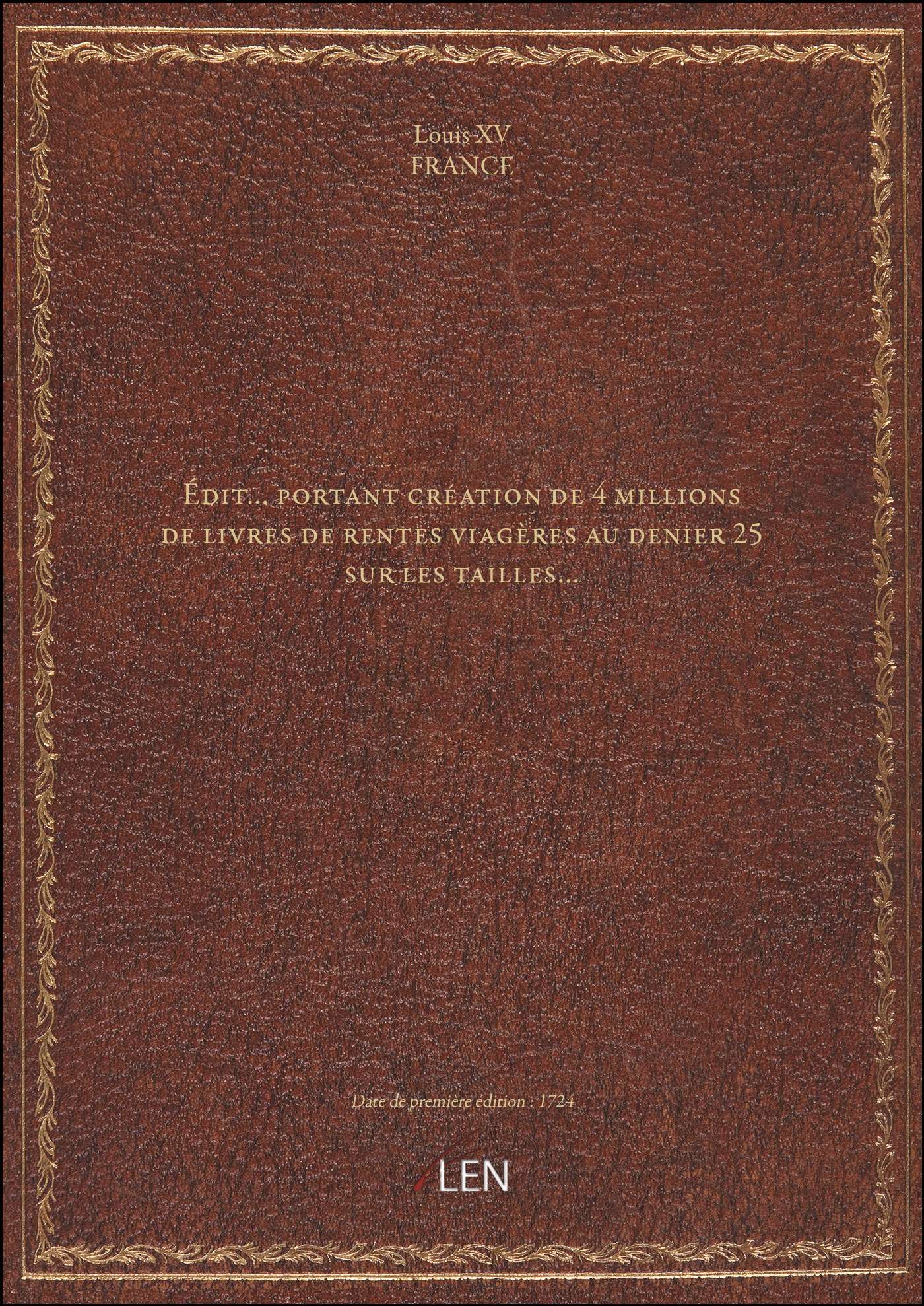 Titre complet : Édit... portant création de 4 millions de livres de rentes viagères au denier 25 sur les tailles...