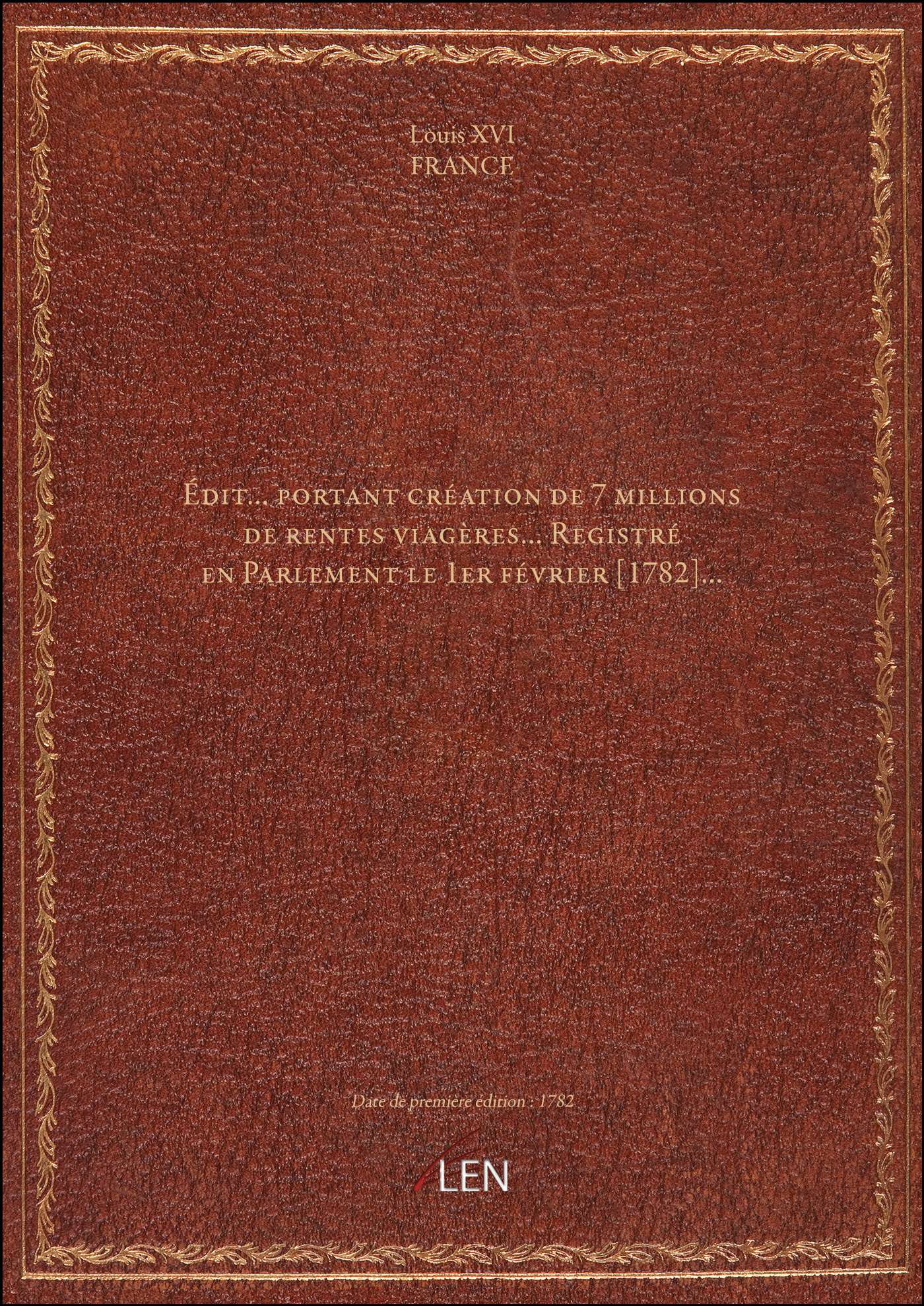 Titre complet : Édit... portant création de 7 millions de rentes viagères... Registré en Parlement le 1er février [1782]...