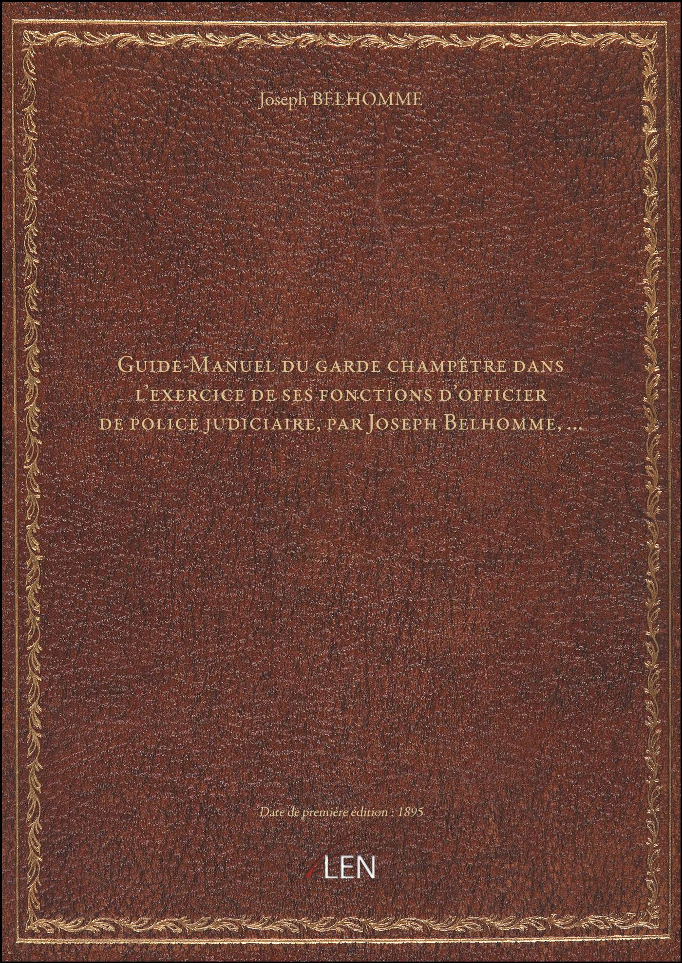 Titre complet : Guide-Manuel du garde champêtre dans l'exercice de ses fonctions d'officier de police judiciaire, par Joseph Belhomme,...