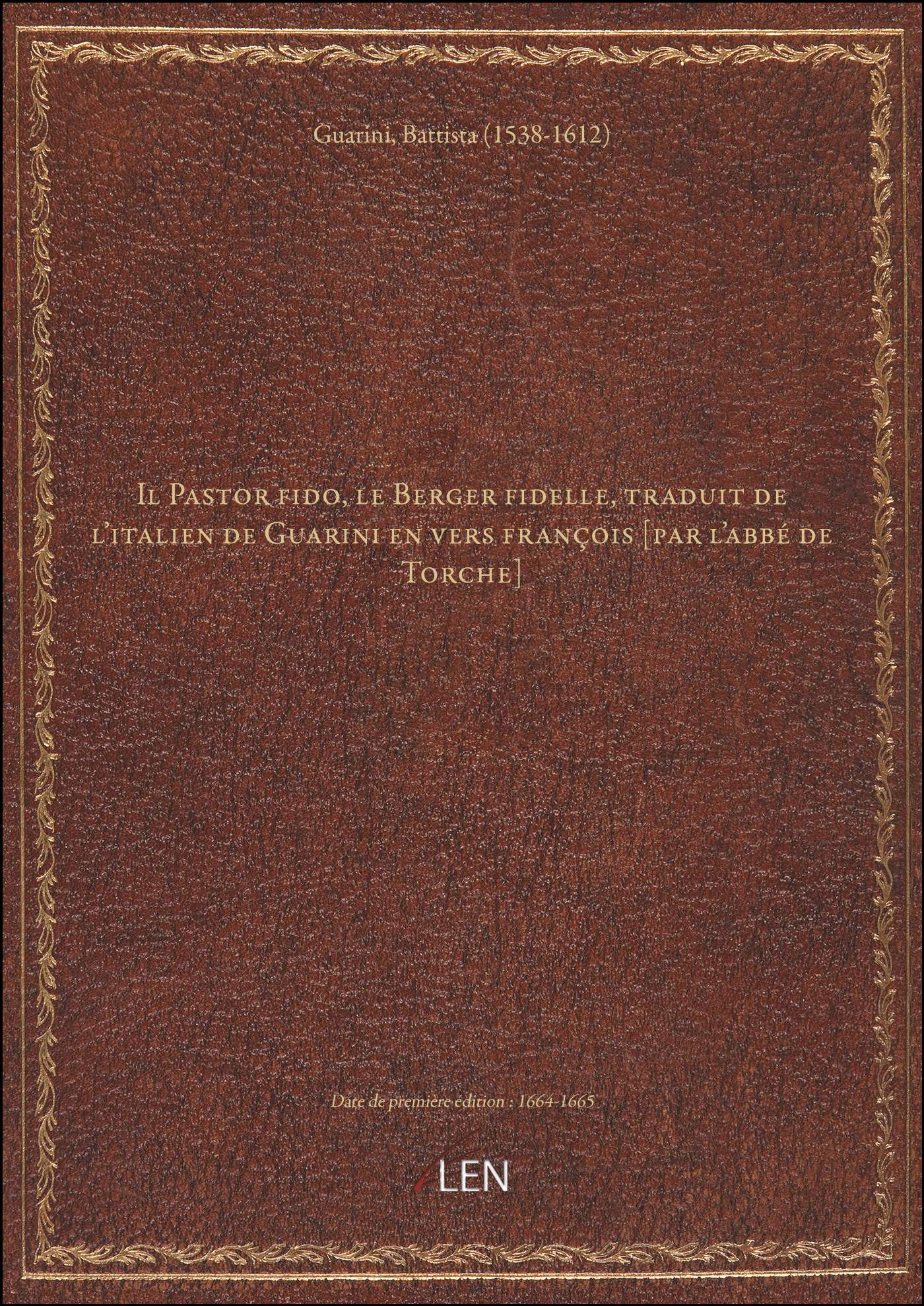 Titre complet : Il Pastor fido, le Berger fidelle, traduit de l'italien de Guarini en vers françois [par l'abbé de Torche]