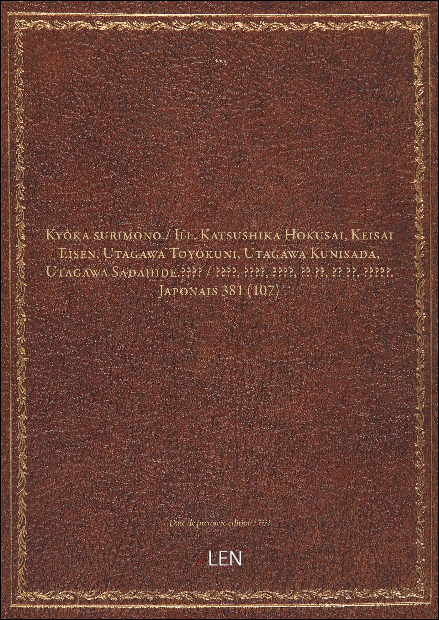 Titre complet : Kyôka surimono / Ill. Katsushika Hokusai, Keisai Eisen, Utagawa Toyokuni, Utagawa Kunisada, Utagawa Sadahide.???? / ????, ????, ????, ?? ??, ?? ??, ?????. Japonais 381 (107)
