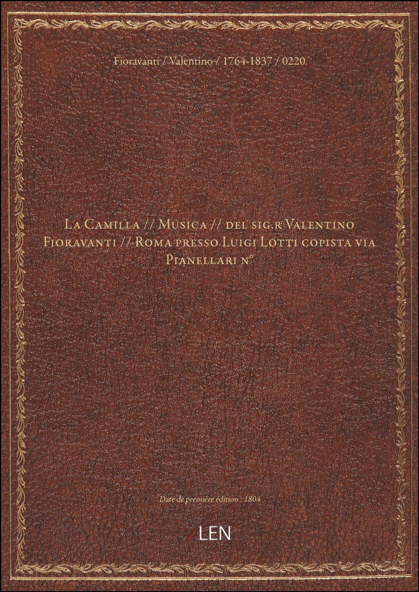 Titre complet : La Camilla // Musica // del sig.r Valentino Fioravanti // Roma presso Luigi Lotti copista via Pianellari n°