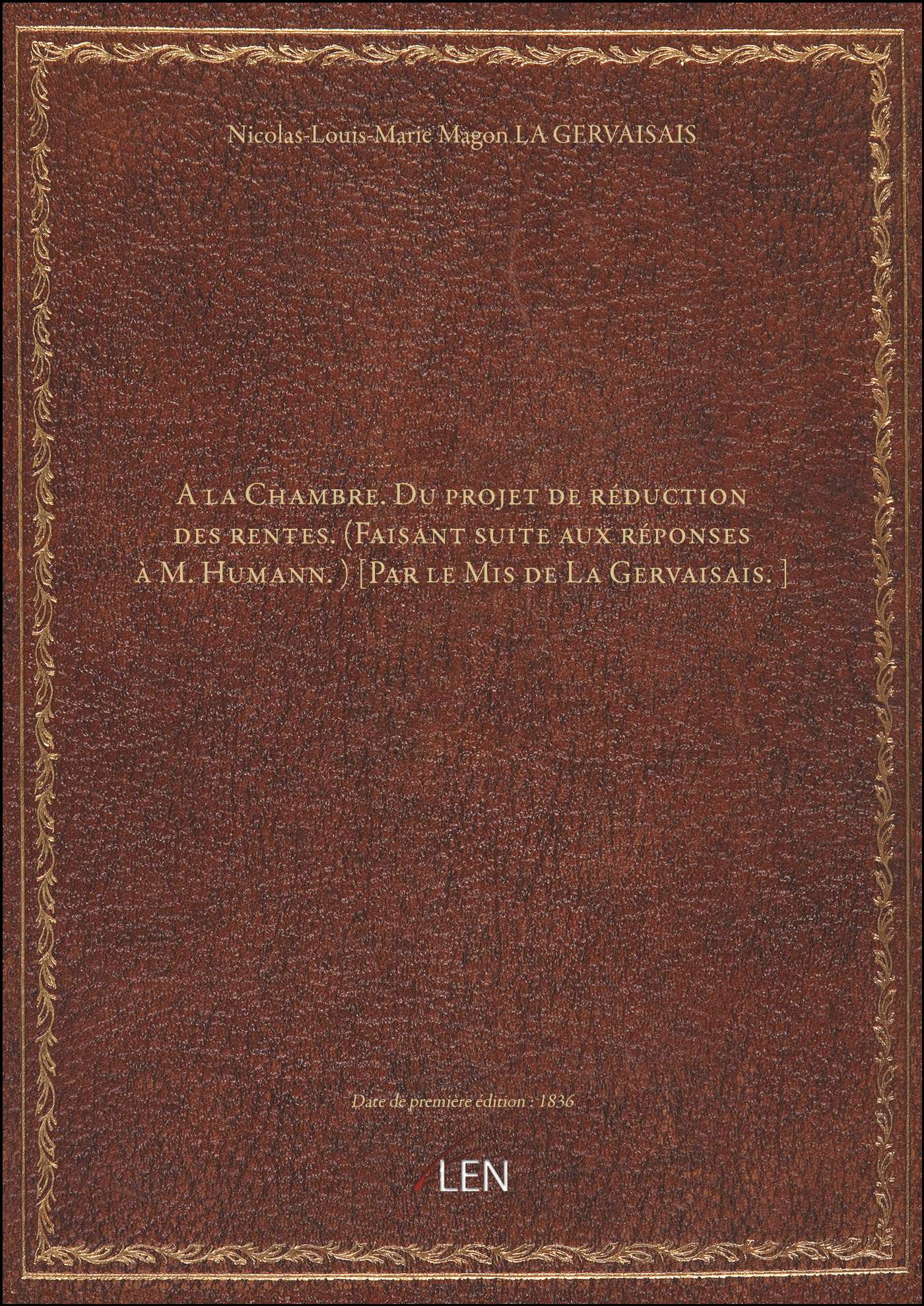 Titre complet : A la Chambre. Du projet de réduction des rentes. (Faisant suite aux réponses à M. Humann.) [Par le Mis de La Gervaisais.]