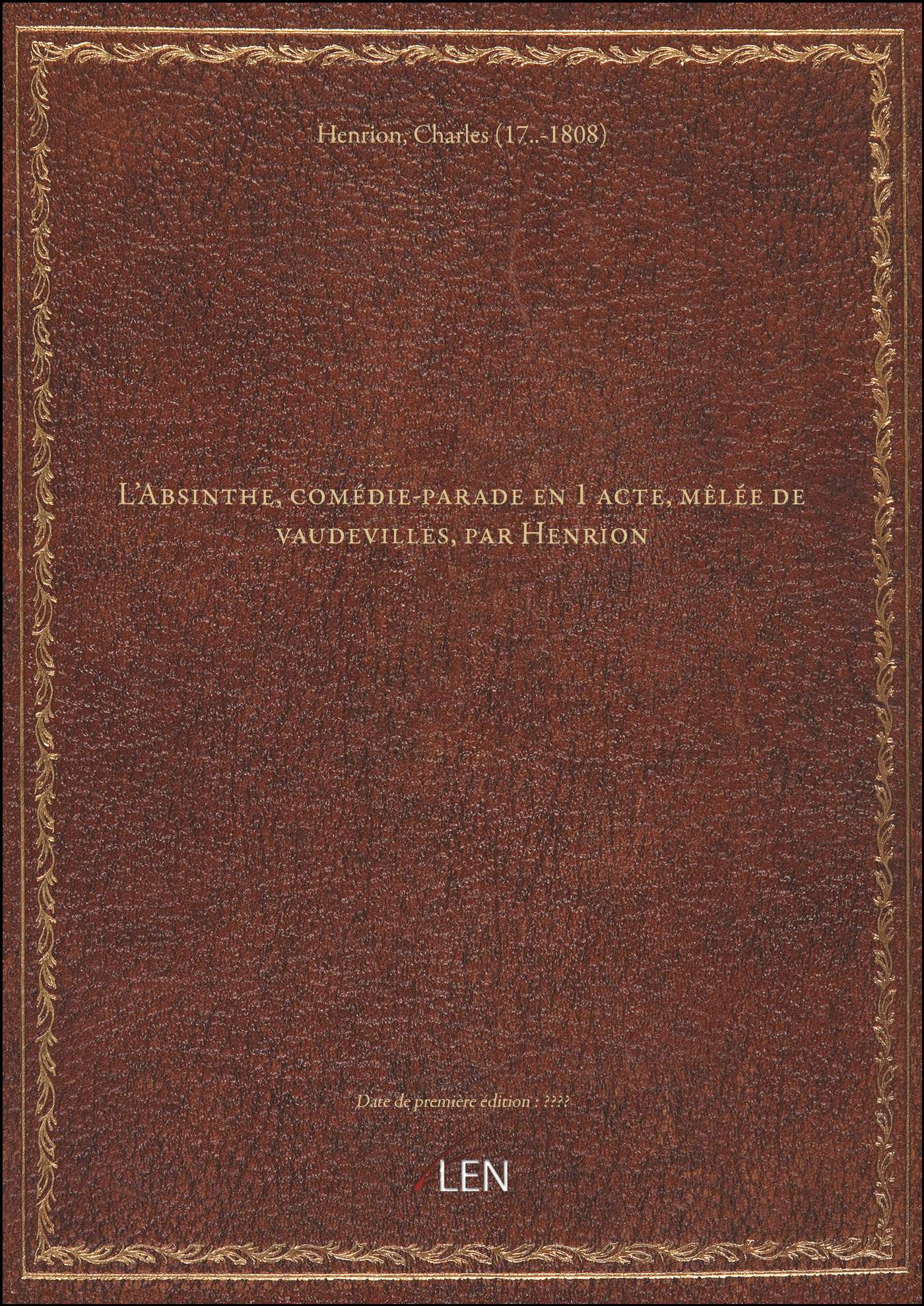Titre complet : L'Absinthe, comédie-parade en 1 acte, mêlée de vaudevilles, par Henrion