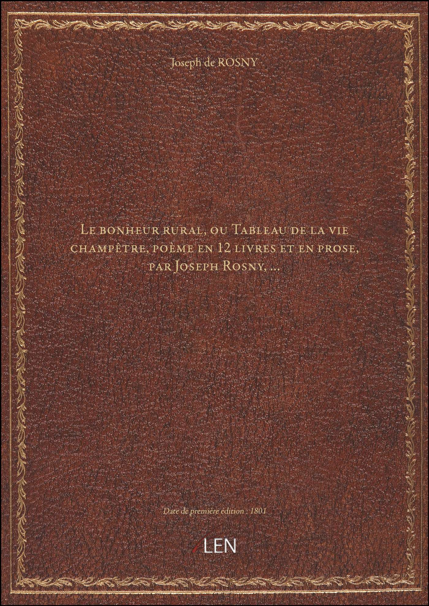 Titre complet : Le bonheur rural, ou Tableau de la vie champêtre , poème en 12 livres et en prose, par Joseph Rosny,...
