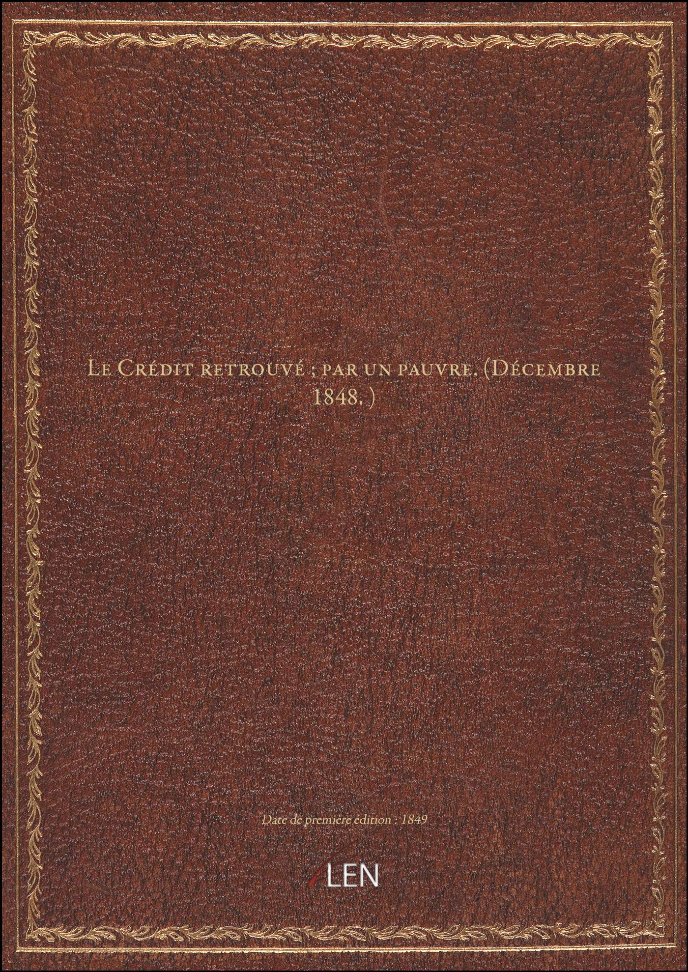 Titre complet : Le Crédit retrouvé ; par un pauvre. (Décembre 1848.)