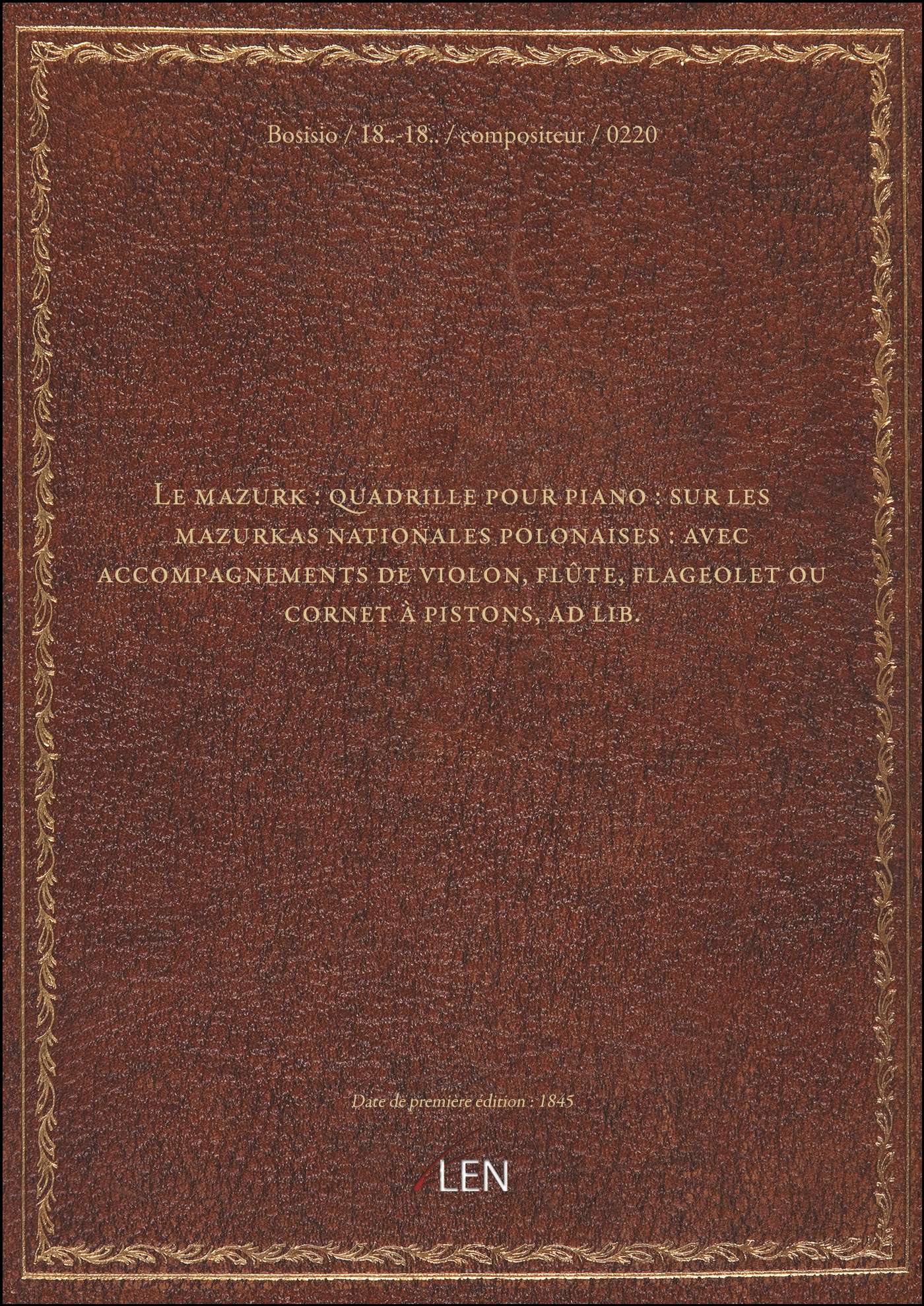 Le mazurk : quadrille pour piano : sur les mazurkas nationales polonaises : avec accompagnements de violon, flûte, flageolet ou cornet à pistons, ad lib. / par Bosisio ; [ill. par] Derancourt
