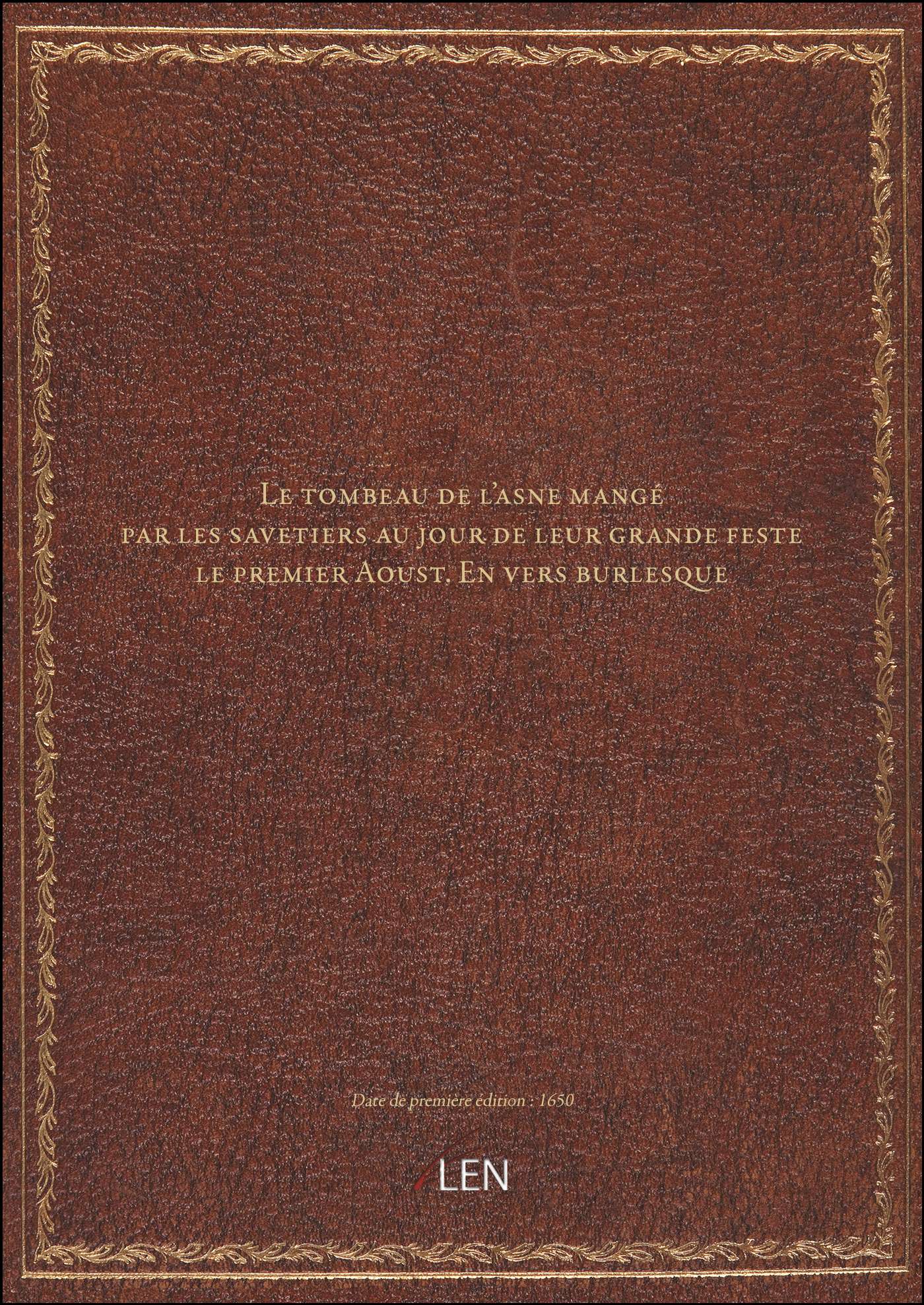 Titre complet : Le tombeau de l'asne mangé par les savetiers au jour de leur grande feste le premier Aoust. En vers burlesque