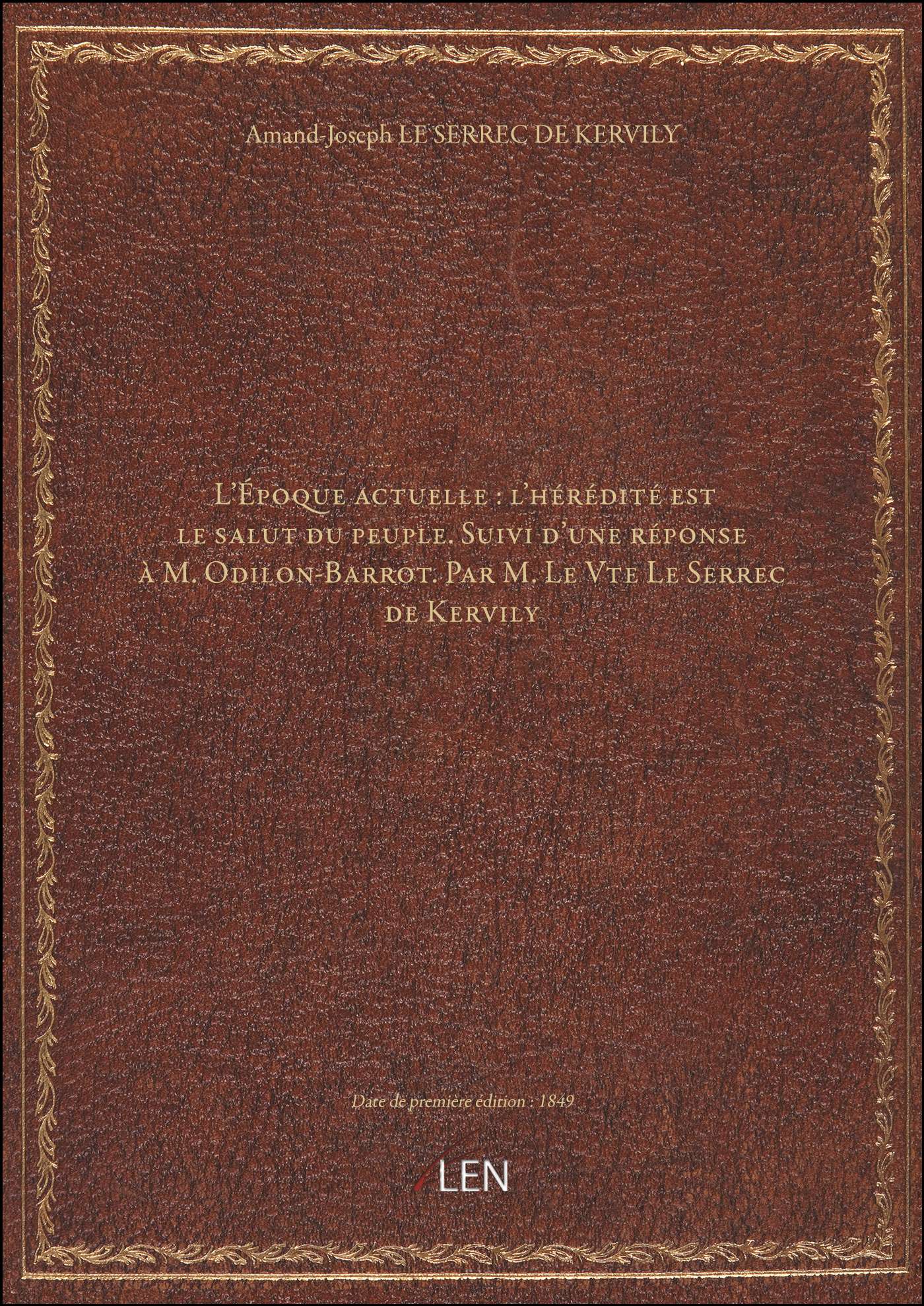 L'Époque actuelle : l'hérédité est le salut du peuple. Suivi d'une réponse à M. Odilon-Barrot. Par M. Le Vte Le Serrec de Kervily