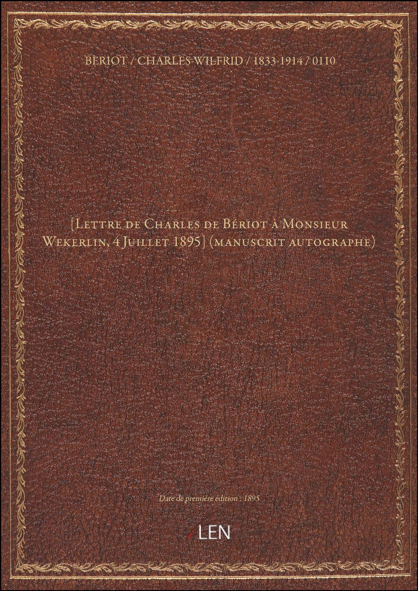 [Lettre de Charles de Bériot à Monsieur Wekerlin, 4 Juillet 1895] (manuscrit autographe)
