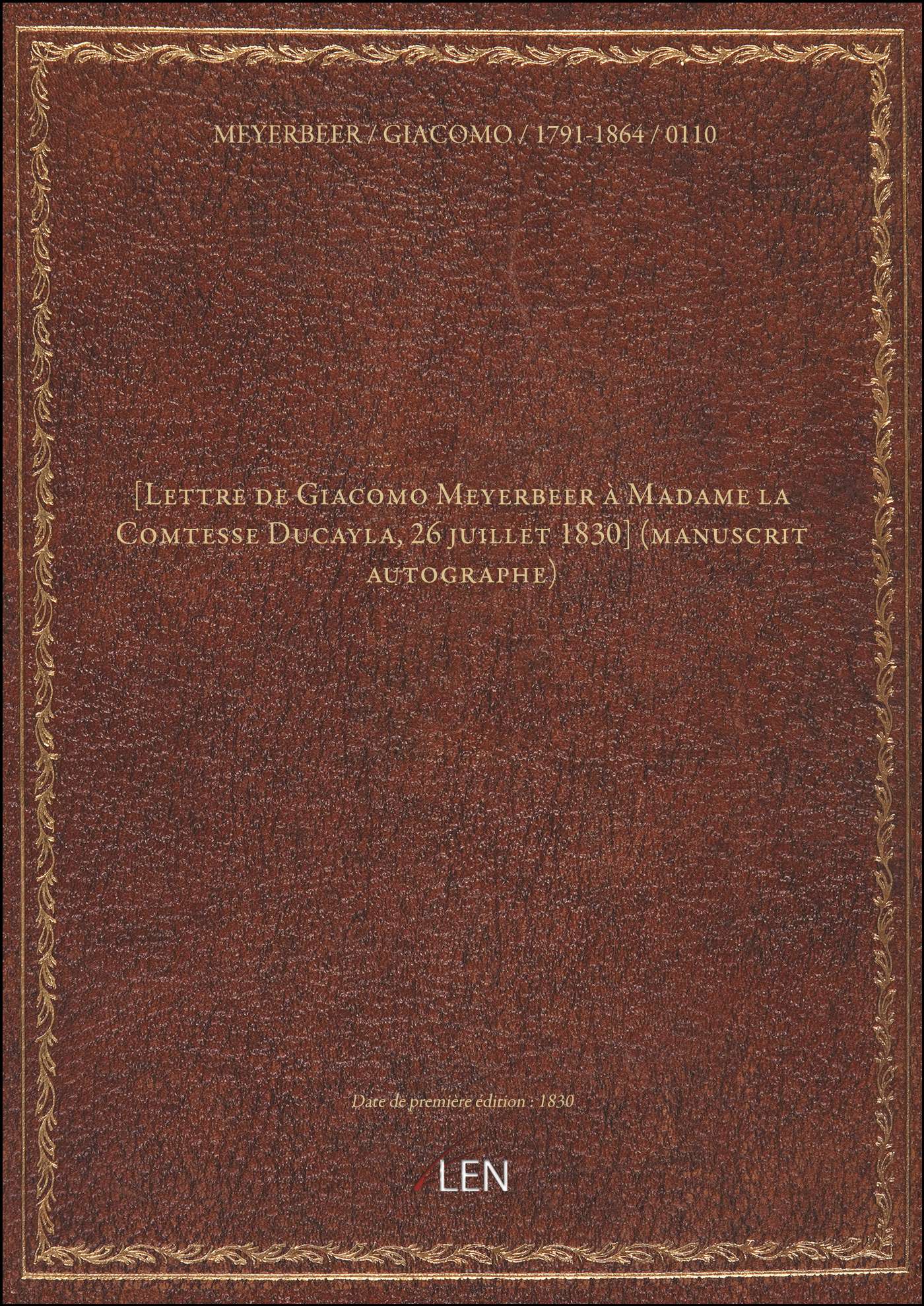 [Lettre de Giacomo Meyerbeer à Madame la Comtesse Ducayla, 26 juillet 1830] (manuscrit autographe)