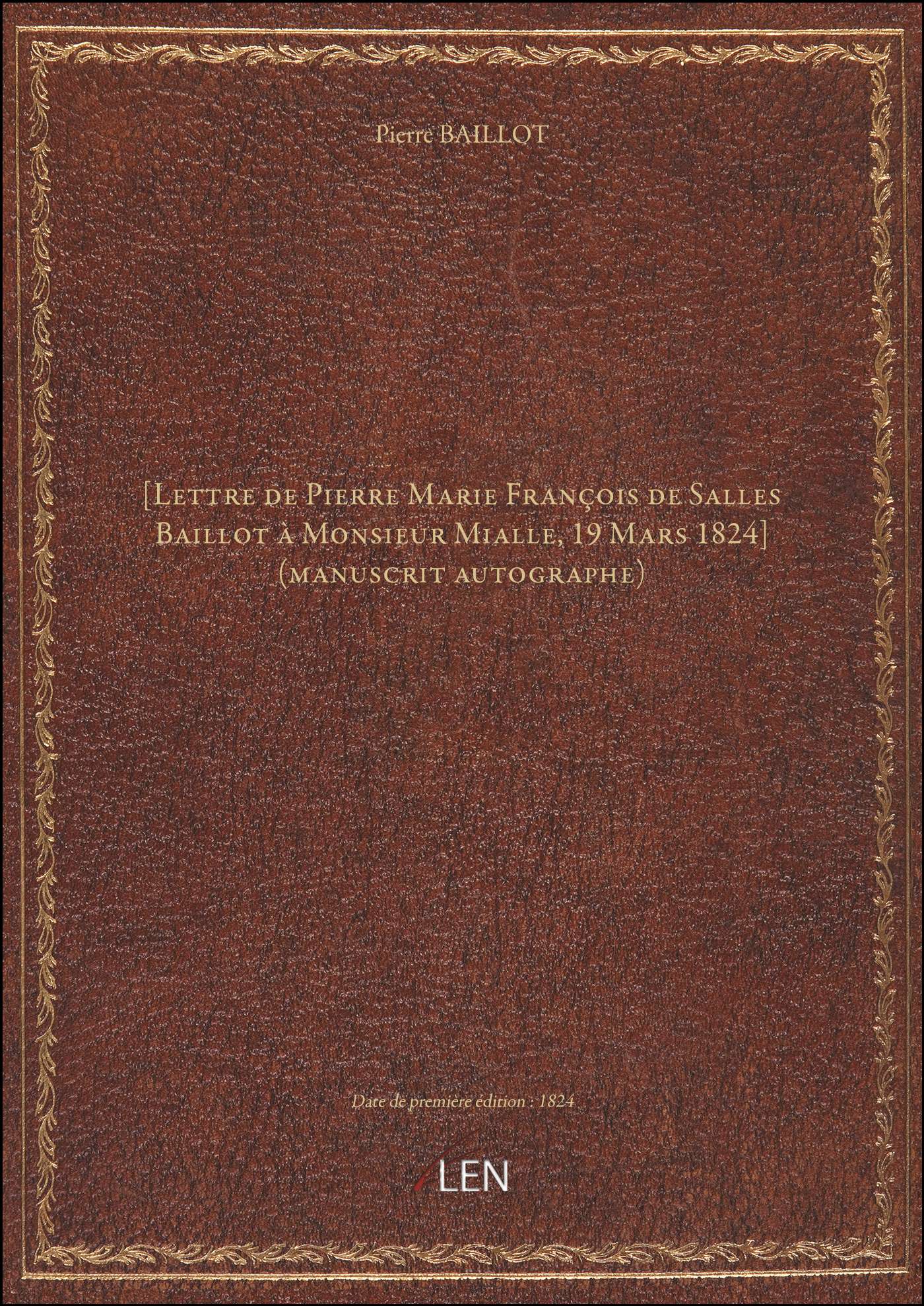 Titre complet : [Lettre de Pierre Marie François de Salles Baillot à Monsieur Mialle, 19 Mars 1824] (manuscrit autographe)