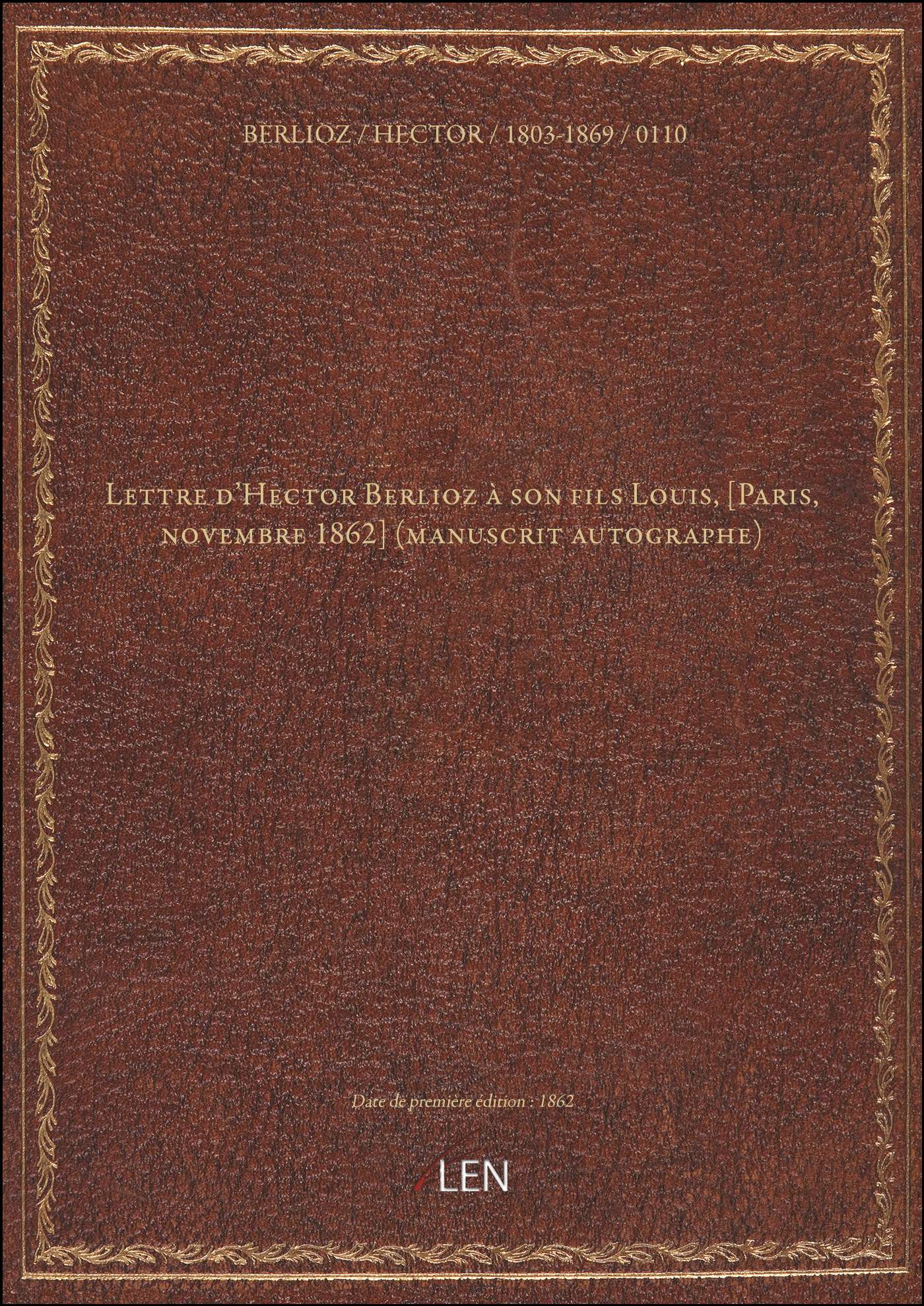 Titre complet : Lettre d'Hector Berlioz à son fils Louis, [Paris, novembre 1862] (manuscrit autographe)